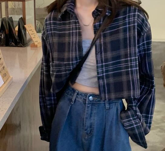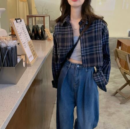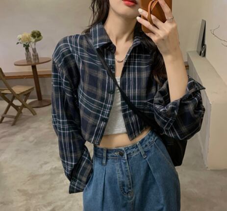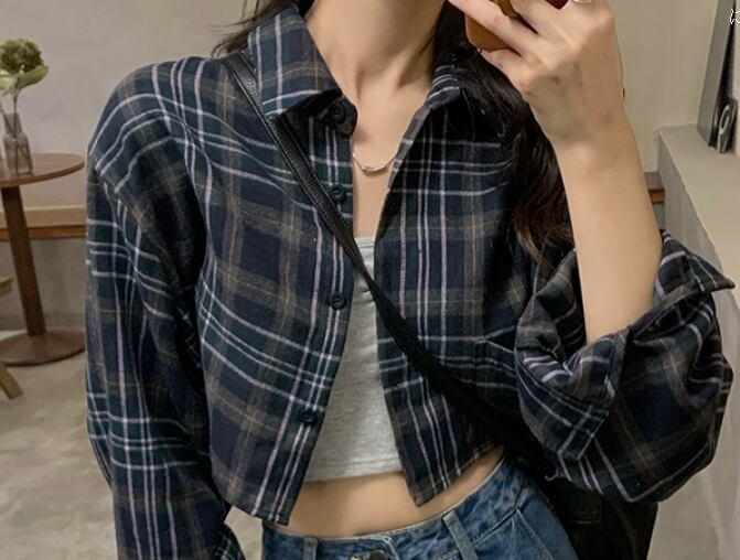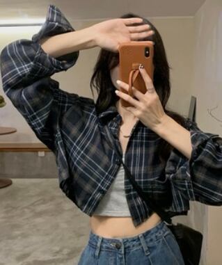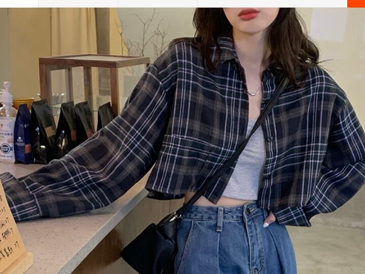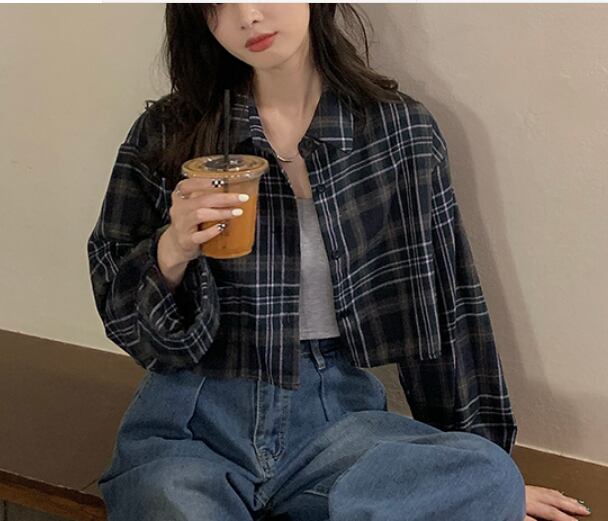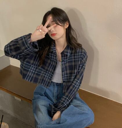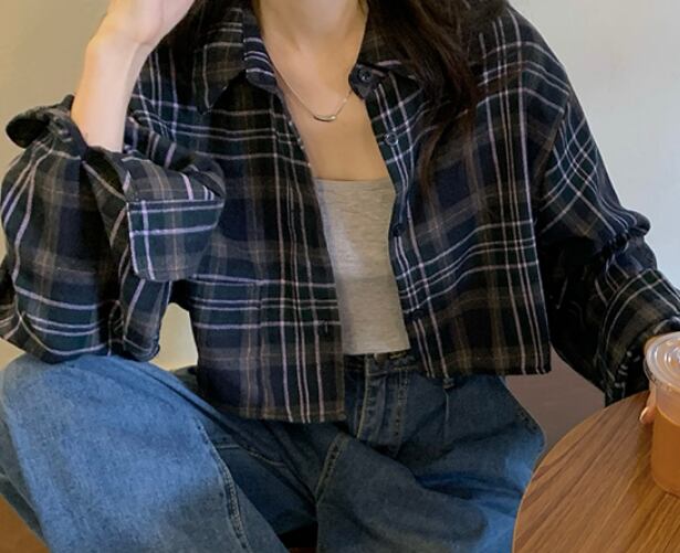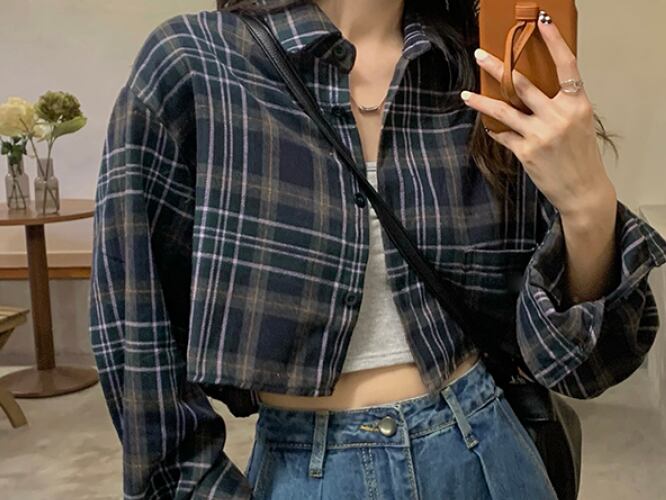 ショート丈長袖チェックシャツ トップス シャツ 長袖 爽やか ショート丈 かわいい チェック柄 シンプル キュートお揃い おしゃれ かっこいい 大人可愛い 流行り こなれ感 キュート 爽やか ナチュラル 柄 春 秋 誕生日 入学式 卒園式 10代 20代 30代 40代 50代 60代 レディース ママ 女の子 公園 学生 通学 デート お出かけ 女子会 イベント リラックス 着回し 普段使い ファッション コーデ スタイル デート モテ プレゼント 流行 インスタ映え フリーサイズ ゆったり