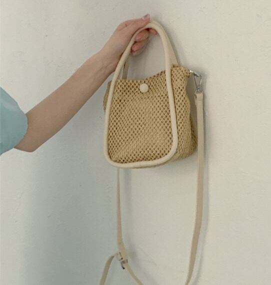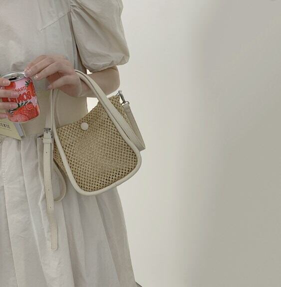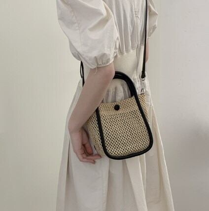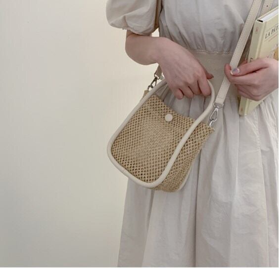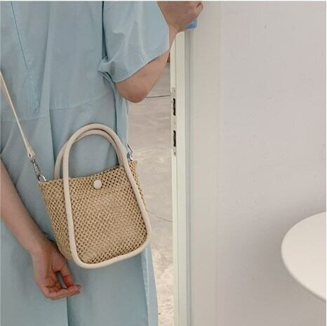 草バッグ女性夏トート小さなバケツパック織り斜めバッグ バッグ カバン レディースバッグ ショルダーバッグ ハンドバック 斜め掛けバッグ 肩がけバック 手持ちバッグ ミニバッグ 斜めがけ 肩がけ バケツ型 ボタン 大人可愛い シンプル カジュアル おしゃれ 大人女子 ラフ キュート 無地 10代 20代 30代 レディース 女性用 OL 学生 デート お出かけ 女子会 お泊まり 休日 リゾート 旅行 デイリー 普段使い 夏 小さめ ホワイト ブラック ベージュ ピンク