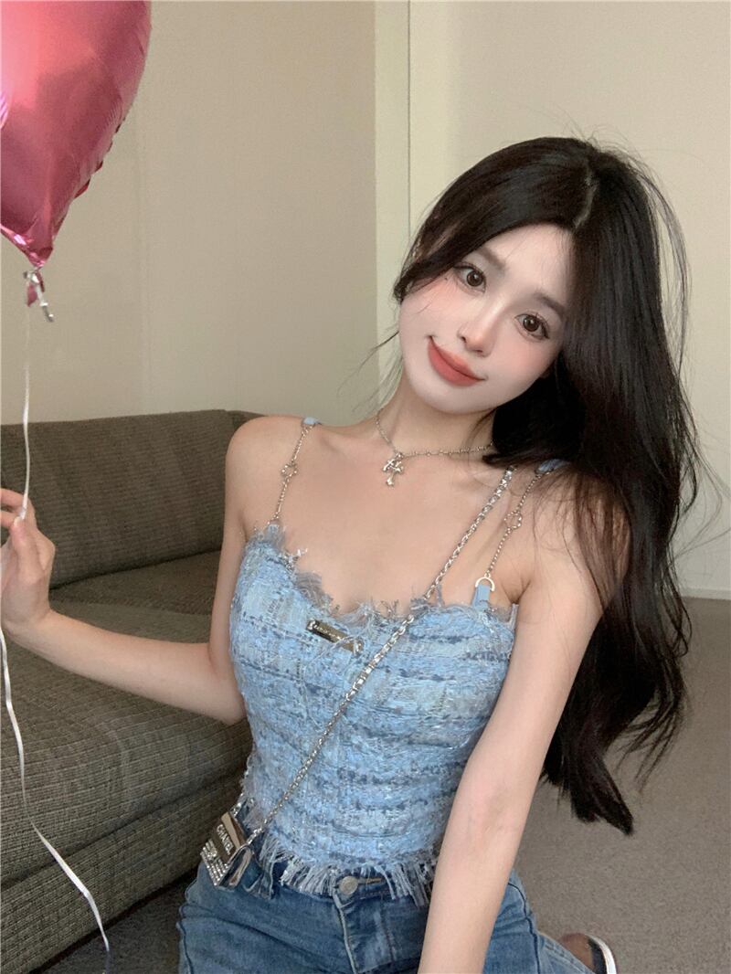 ブルータッセルスリングリトルベストレディースサマースウィートガールアウタードレスデザインセンスシックインナーショートトップス トップス ベスト ショート丈 袖なし タイト 大人可愛い シンプル カジュアル 大人 おしゃれ 大人女子 こなれ感 ラフ キュート セクシー 柄 春 夏 10代 20代 30代 レディース 女性用 OL 学生 通学 デート お出かけ 公園デビュー 女子会 お泊まり 休日 パーティー イベント リゾート 旅行 海 高原 ガーデン 着回し 普段使い 重ね着 ブルー