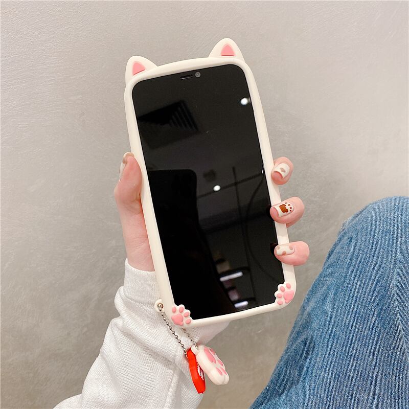 かわいいキュート猫爪のペンダントiPhoneアップル携帯電話ケース女性8plusオールインクルーシブ7シリコーン落下防止ケース スマホケース 柔らかい 大人可愛い カジュアル おしゃれ ラブリー キュート 主役級 存在感 文字 10代 20代 30代 レディース OL 学生 デイリー 普段使い ファッション ホワイト