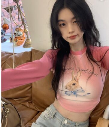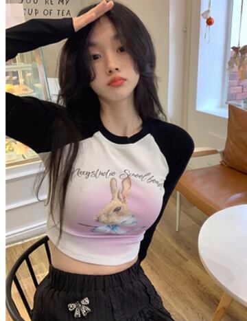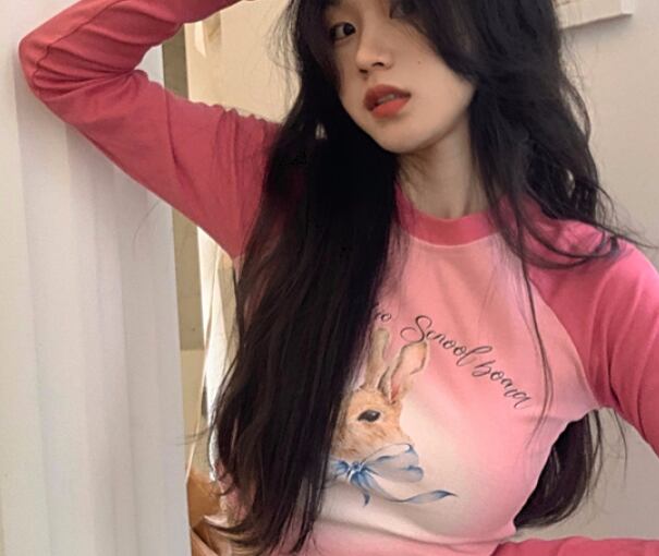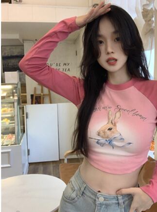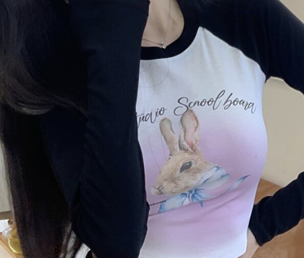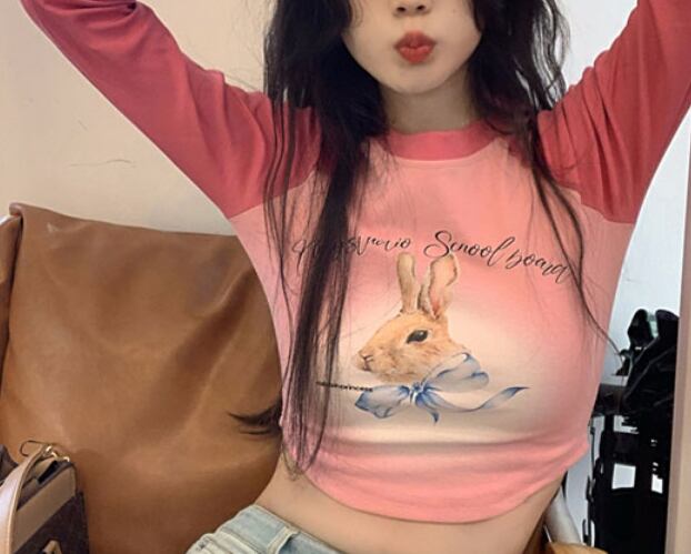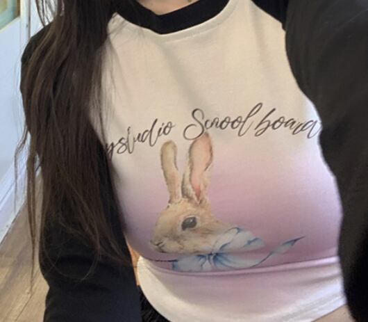 ウサギプリントショート丈Tシャツ トップス 長袖 爽やか 目立つ かわいい 大人可愛い きれいめ シンプル コンパクト おしゃれ かっこいい 流行り ポップ こなれ感 キュート 爽やか ガーリー 柄 春 秋 ショート丈 10代 20代 30代 40代 レディース ママ 女の子 通勤 学生 通学 デート お出かけ 女子会 イベント リラックス 着回し 普段使い ファッション コーデ スタイル デート モテ プレゼント 流行 インスタ映え フリーサイズ タイト