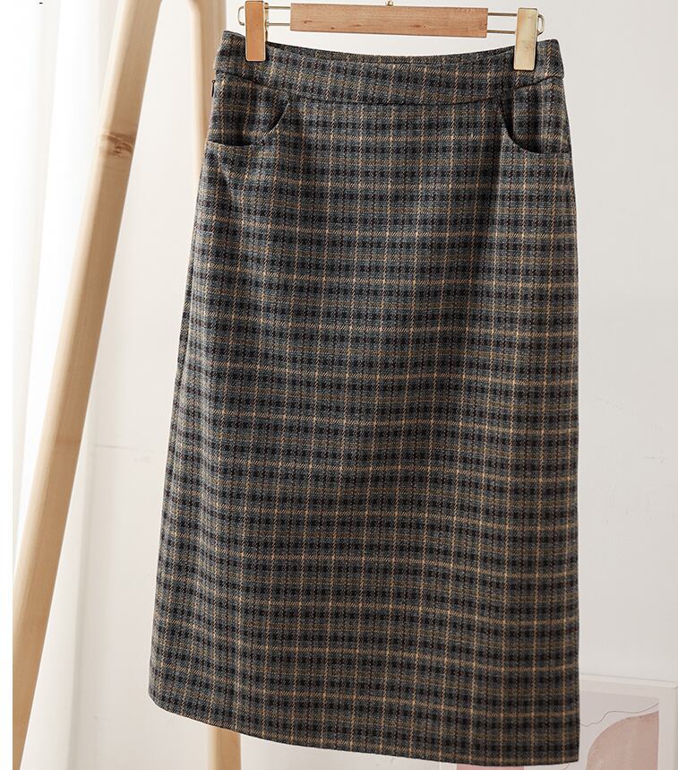 落ち着いたチェック柄が大人っぽいタイトスカート。