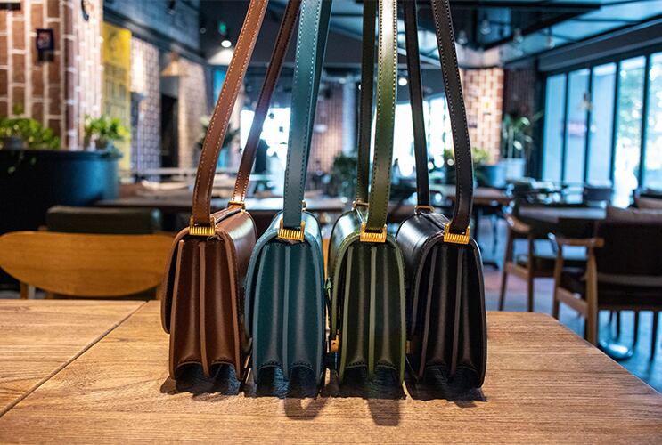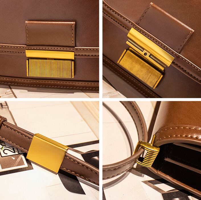 ニュアンスあるレザー風素材は高級感に溢れ、ヴィンテージカラーの金具との相性も良く、華やかさと落ち着いた大人の雰囲気を醸し出します。