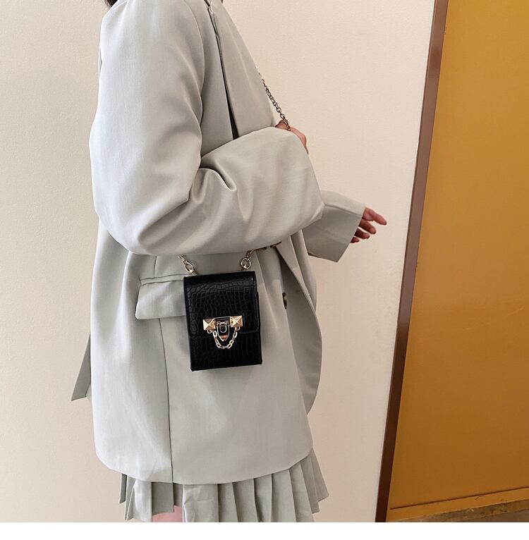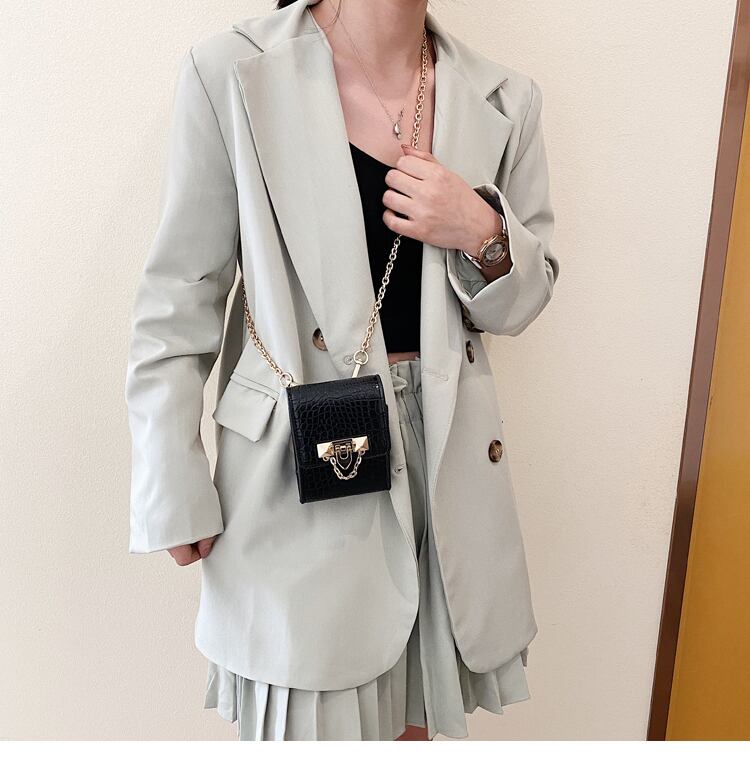 スクエア型のフォルムとクラシックモダンなデザインがスタイリングのアクセントになり、差し色ファッションアイテムとしても使えます。