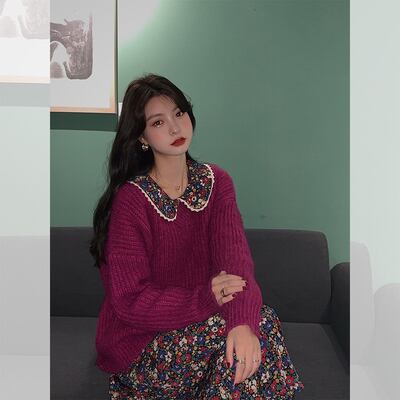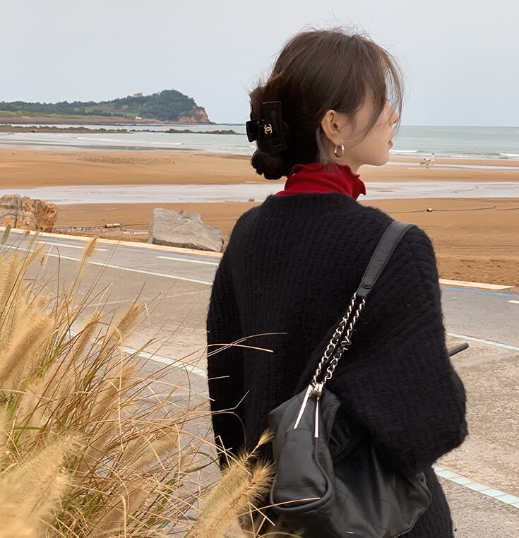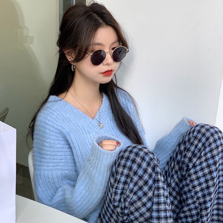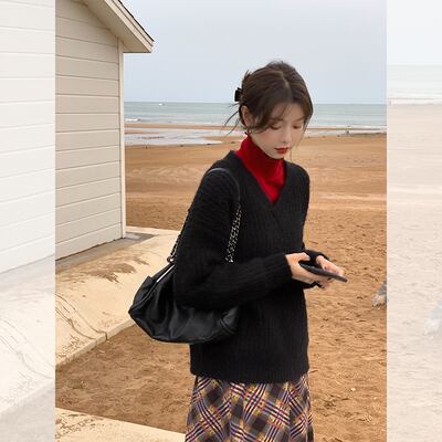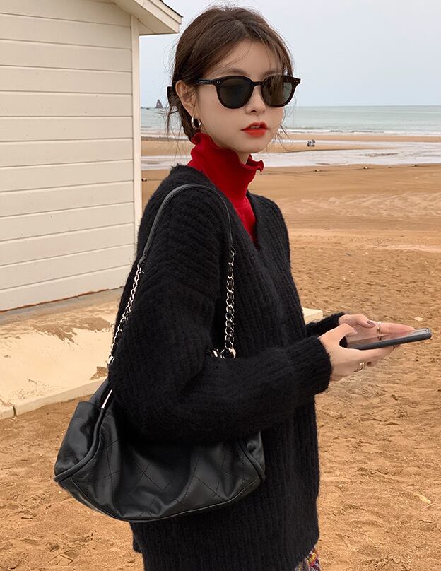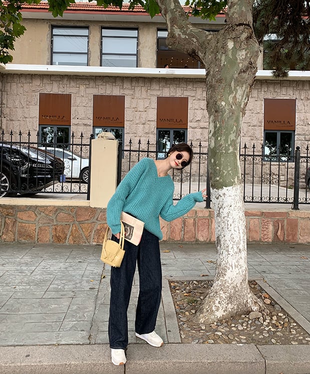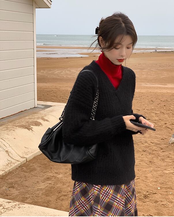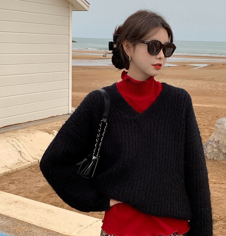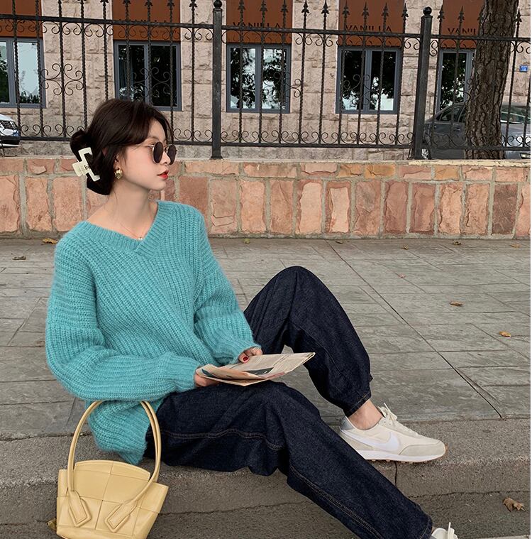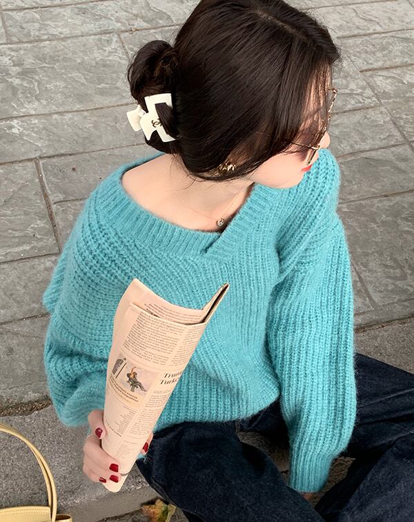 深めのVネック開きでオーバーサイズの抜け感がおしゃれなニット。