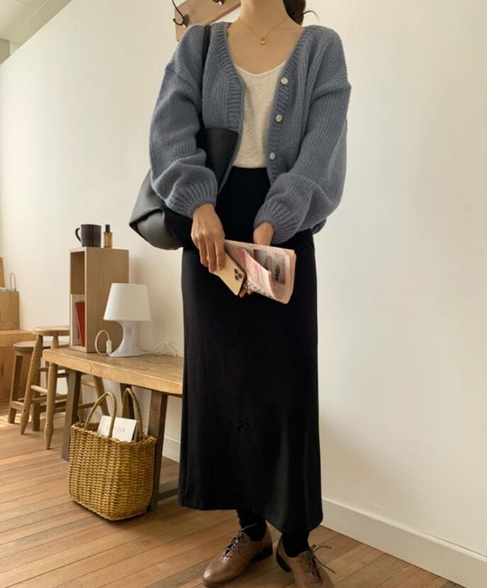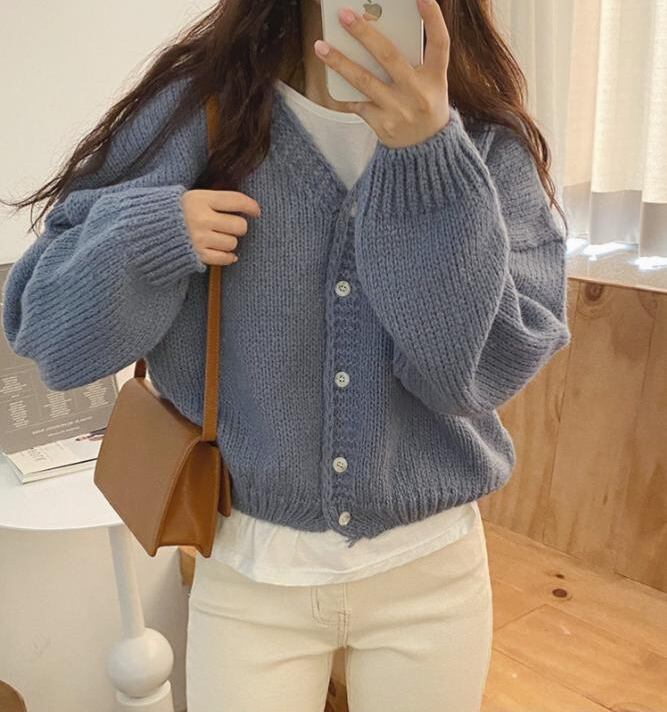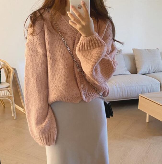 ざっくり編みが可愛いシンプルニットカーディガン。