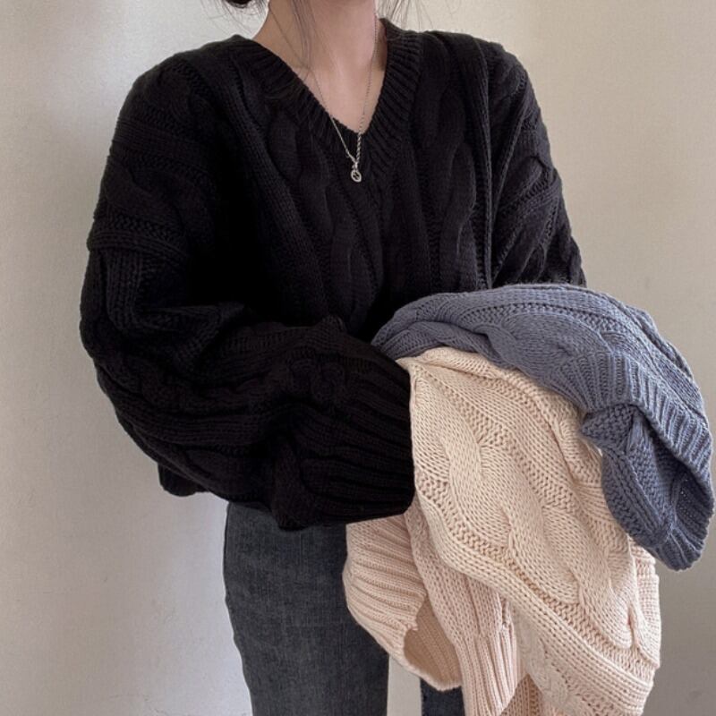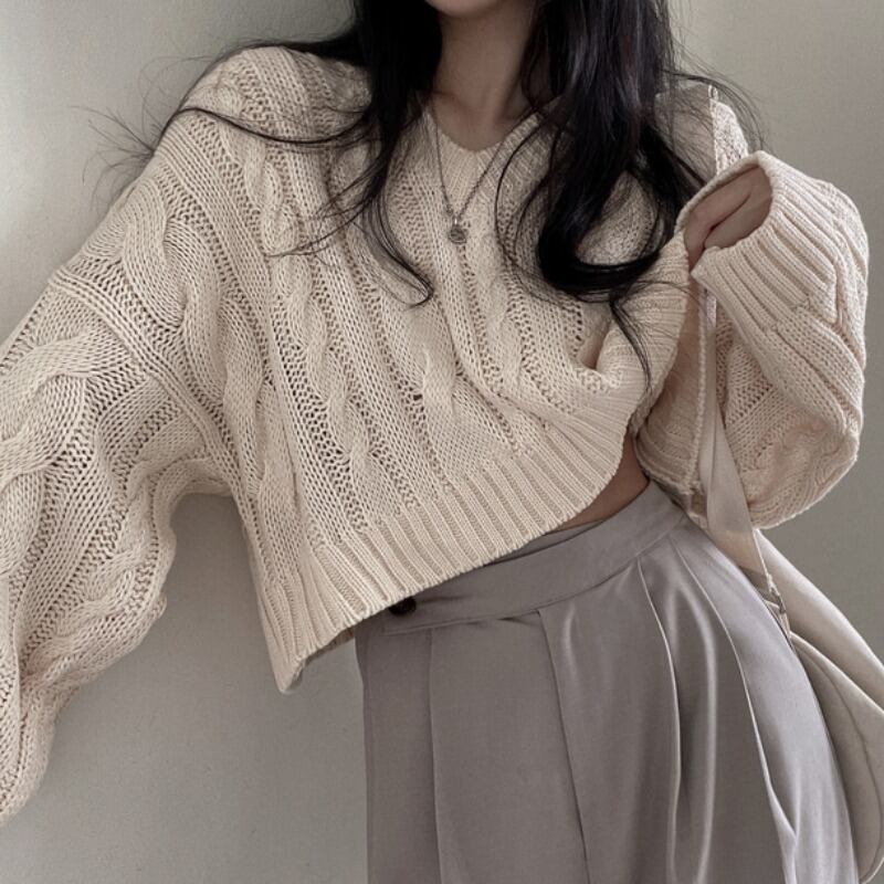Vネックニット トップス ニットソー セーター ショート ショート丈 袖あり 長袖 Vネック ケーブルニット かわいい 大人可愛い きれいめ シンプル カジュアル 大人 上品 おしゃれ お洒落 大人可愛い 大人女子 こなれ感 ラブリー キュート ガーリー モダン 主役級 存在感 無地 秋 冬 10代 20代 30代 レディース OL 通勤 学生 通学 デート お出かけ 公園デビュー 女子会 休日 着回し 普段使い 重ね着 韓国系 オルチャン 色展開 黒 ブラック 青 ブルー アプリコット