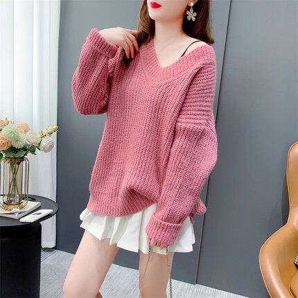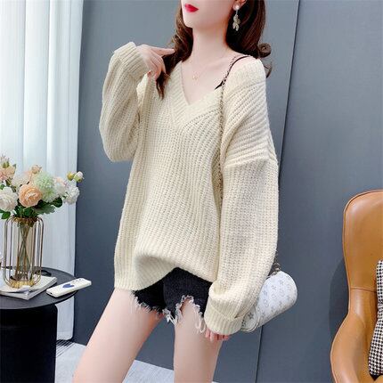 ざっくり編地が大人の抜け感を演出するVネックニット。
