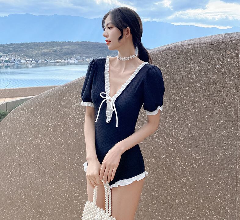 ワンピース水着 水着 ワンピース水着 ワンピース 体系カバー 二の腕カバー 半袖 リボン フリル レースアップ ハイウエスト かわいい 大人可愛い きれいめ セクシー sexy シンプル カジュアル ナチュラル 華やか 大人 大人っぽい おしゃれ お洒落 レトロ 存在感 女っぽ ラブリー キュート ガーリー 無地 体系カバー 二の腕カバー 美脚 脚長 サイズ M L XL 2XL 色展開 黒 ブラック