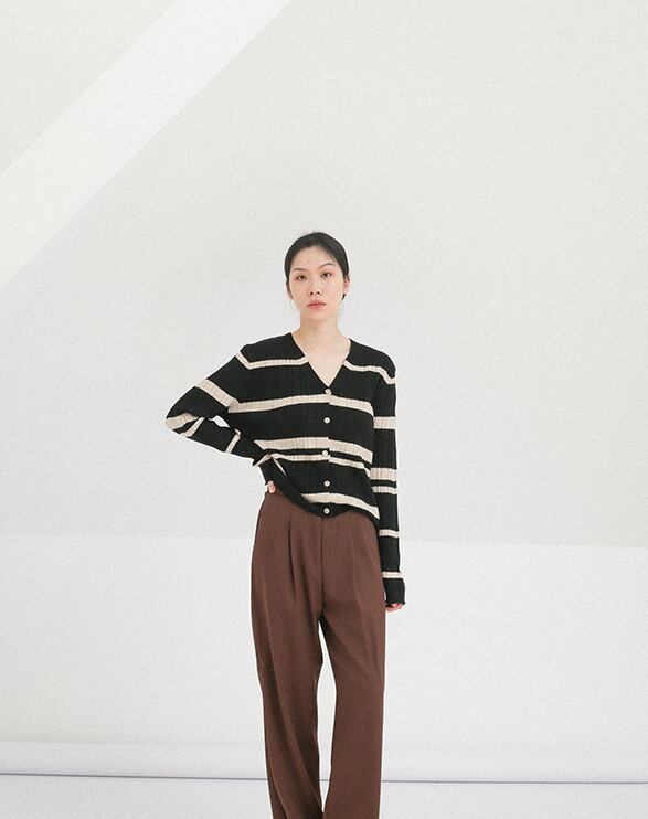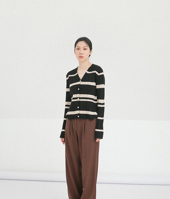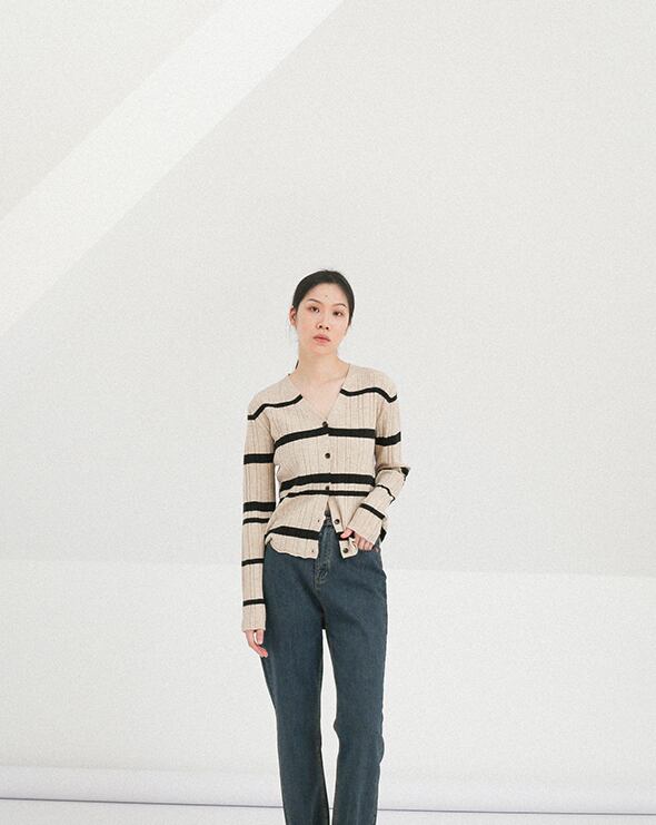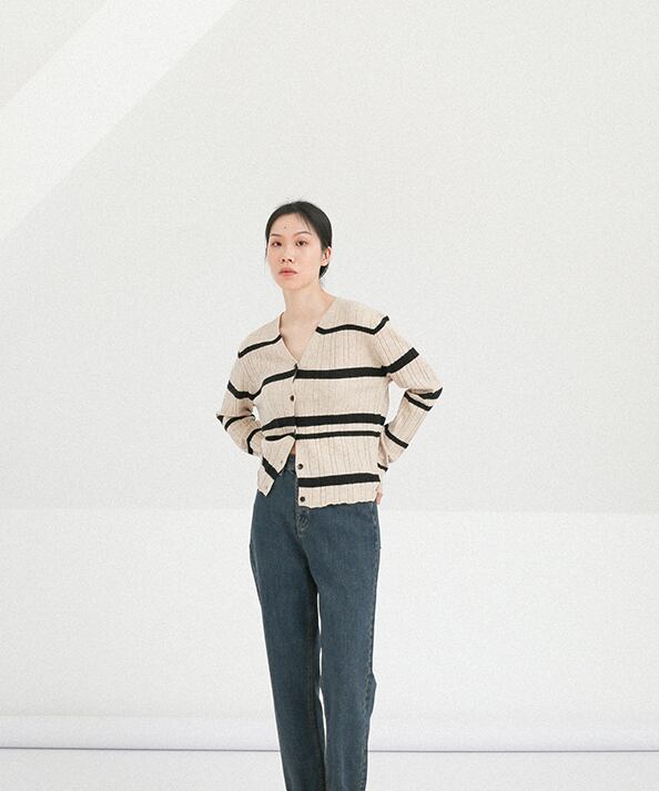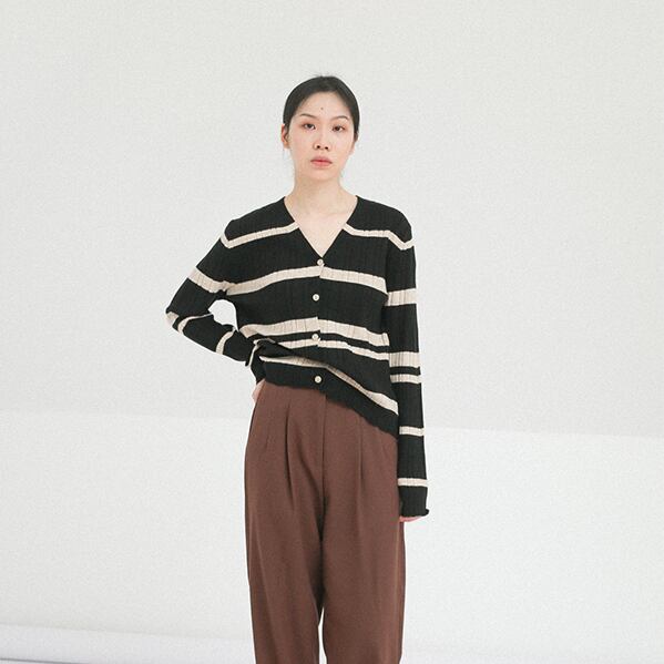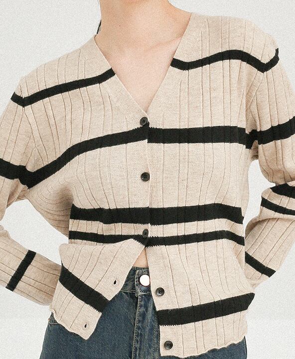ボーダー柄のカーディガン。