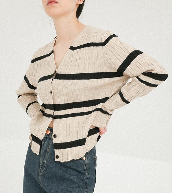 ボーダーカーディガン トップス カーディガン 袖あり 長袖 Vネック 前開き かわいい 大人可愛い きれいめ シンプル カジュアル 大人 上品 おしゃれ お洒落 大人可愛い 大人女子 こなれ感 ラブリー キュート ガーリー モダン 主役級 存在感 柄 ボーダー 春 秋 10代 20代 30代 レディース OL 通勤 学生 通学 デート お出かけ 公園デビュー 女子会 休日 着回し 普段使い 重ね着 韓国系 オルチャン 色展開 黒 ブラック アプリコット