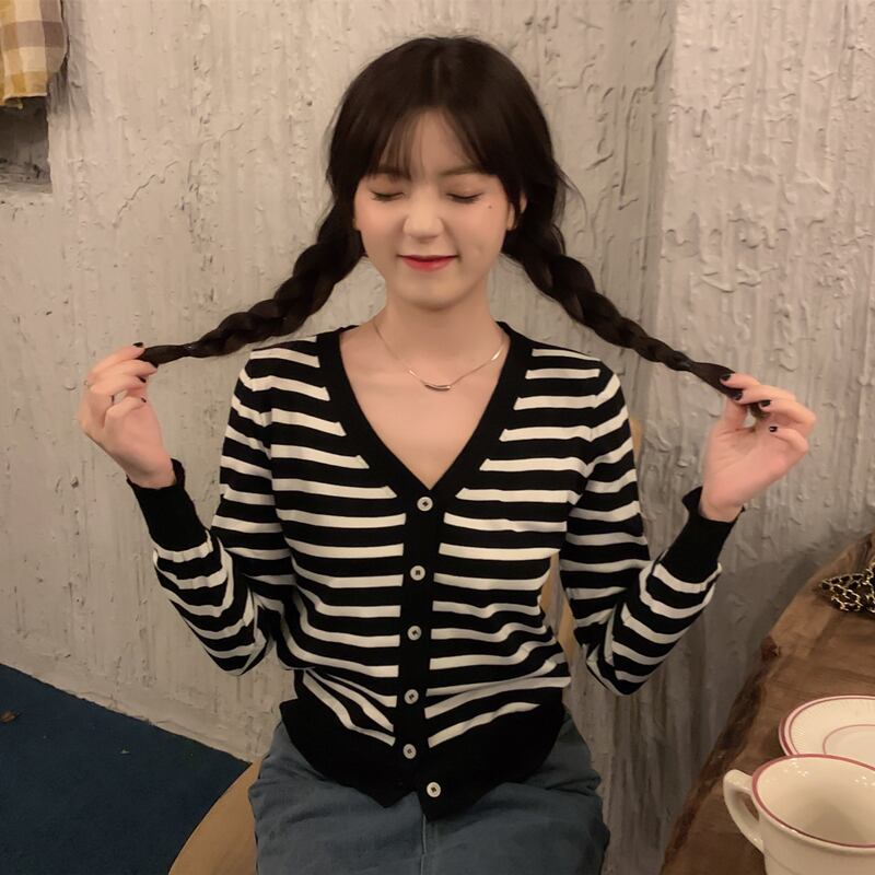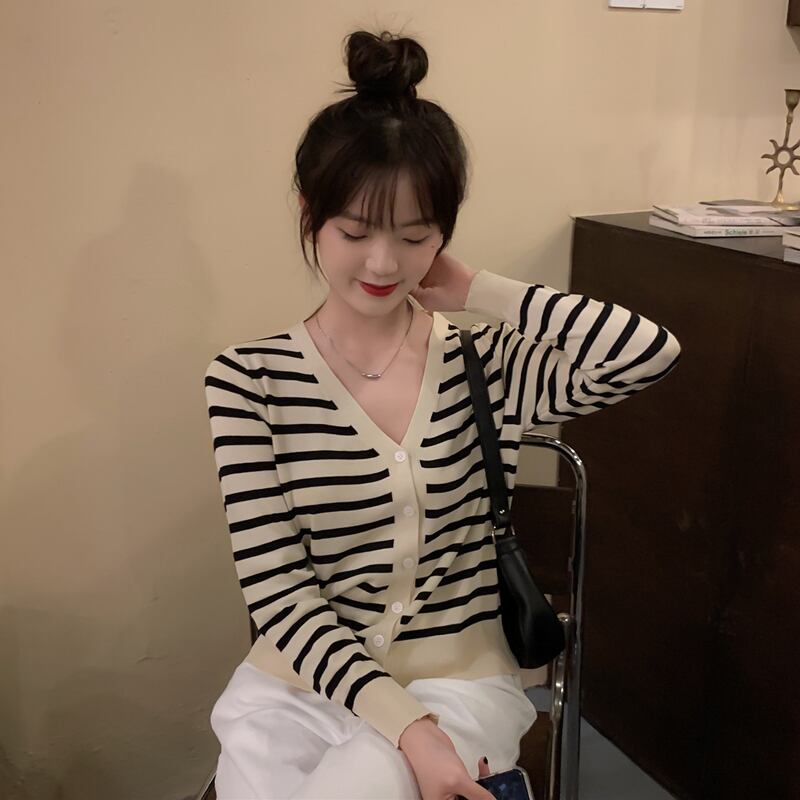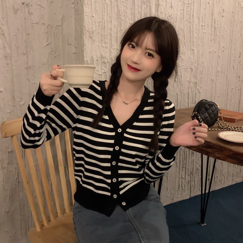 ボーダーカーディガン トップス カーディガン 袖あり 長袖 Vネック 前開き かわいい 大人可愛い きれいめ シンプル カジュアル 大人 上品 おしゃれ お洒落 大人可愛い 大人女子 こなれ感 ラブリー キュート ガーリー モダン 主役級 存在感 柄 ボーダー 春 秋 冬 10代 20代 30代 レディース OL 通勤 学生 通学 デート お出かけ 公園デビュー 女子会 休日 着回し 普段使い 重ね着 韓国系 オルチャン サイズ S M L XL 色展開 白 ホワイト 黒 ブラック