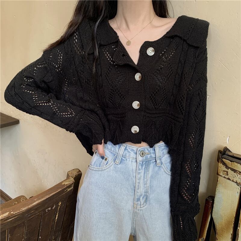 ショート丈カーディガン トップス カーディガン ショート ショート丈 袖あり 長袖 ラウンドネック 襟付き 前開き 透け感 かわいい 大人可愛い きれいめ シンプル カジュアル 大人 上品 おしゃれ お洒落 大人可愛い 大人女子 こなれ感 ラブリー キュート ガーリー モダン 主役級 存在感 無地 春 夏 秋 10代 20代 30代 レディース 学生 通学 デート お出かけ 公園デビュー 女子会 休日 着回し 普段使い 重ね着 韓国系 オルチャン サイズ S M L XL 色展開 黒 ブラック カーキ