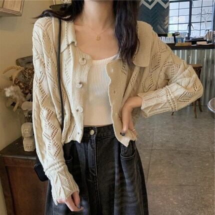 透け感が可愛いショート丈カーディガン。