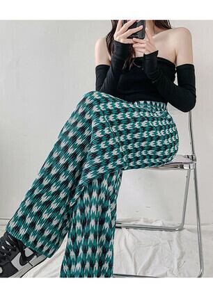 千鳥柄ワイドパンツ ボトムス パンツ ワイドパンツ ロング ロング丈 ワイド プリーツ ハイウエスト ウエストゴム かわいい 大人可愛い きれいめ シンプル カジュアル 大人 上品 おしゃれ お洒落 大人可愛い 大人女子 こなれ感 ラブリー キュート ガーリー モダン 主役級 存在感 柄 春 夏 秋 10代 20代 30代 レディース 学生 通学 デート お出かけ 公園デビュー 女子会 休日 着回し 普段使い 韓国系 オルチャン サイズ S M L XL 2XL 3XL 色展開 緑 グリーン