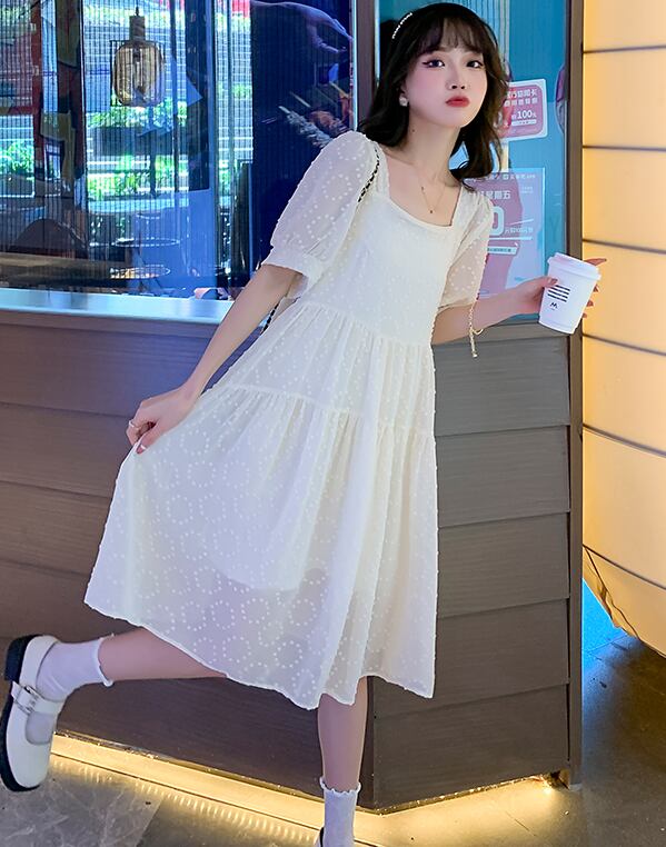 フレアワンピース ワンピース フレアワンピース ワンピドレス 膝丈 ひざ丈 袖あり 半袖 パフスリーブ スクエアネック フレア Aライン シフォン リボン ハイウエスト かわいい 大人可愛い きれいめ シンプル カジュアル 大人 上品 おしゃれ お洒落 大人可愛い 大人女子 こなれ感 ラブリー キュート ガーリー モダン 主役級 存在感 無地 春 夏 10代 20代 30代 レディース 学生 通学 デート お出かけ 公園デビュー 女子会 休日 着回し 普段使い 重ね着 韓国系 オルチャン サイズ M L