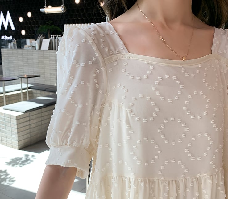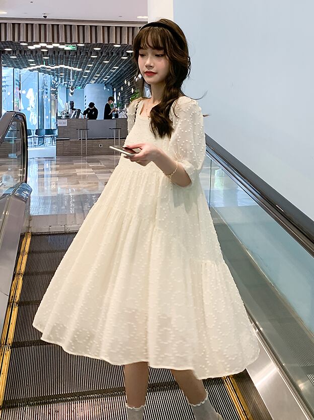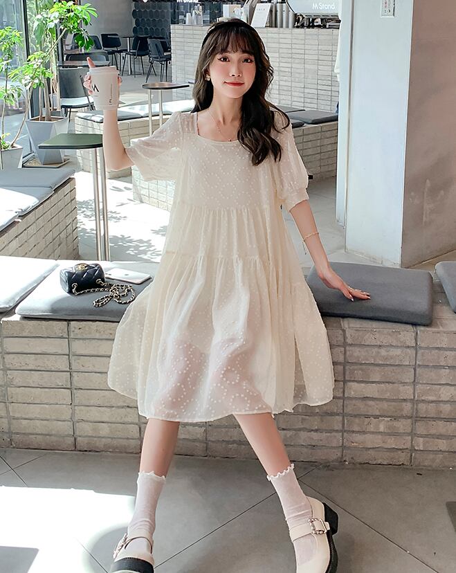 パフスリーブとティアード切り替えで女性らしさ溢れるワンピース。