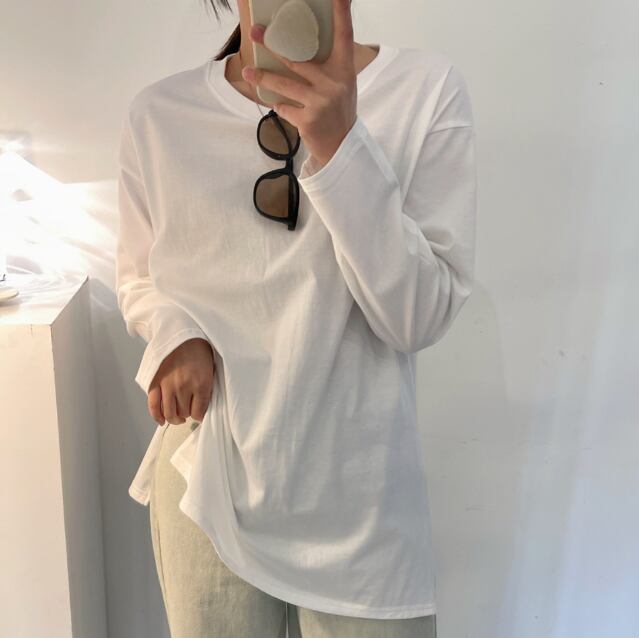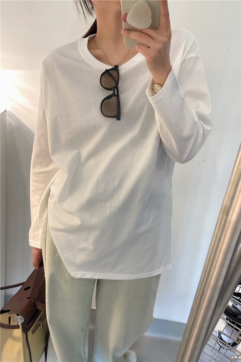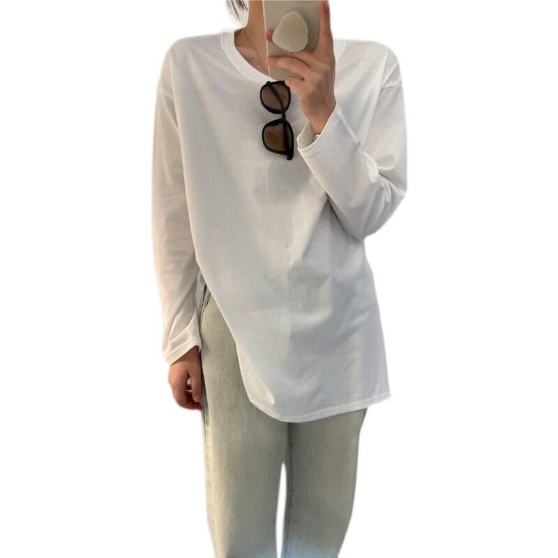 ロンT トップス Tシャツ カットソー 袖あり 長袖 ラウンドネック スリット サイドスリット 綿 かわいい 大人可愛い きれいめ シンプル カジュアル 大人 上品 おしゃれ お洒落 大人可愛い 大人女子 こなれ感 ラブリー キュート ガーリー セクシー モダン 主役級 存在感 無地 春 秋 10代 20代 30代 レディース 学生 通学 デート お出かけ 公園デビュー 女子会 休日 着回し 普段使い 重ね着 韓国系 オルチャン 色展開 白 ホワイト