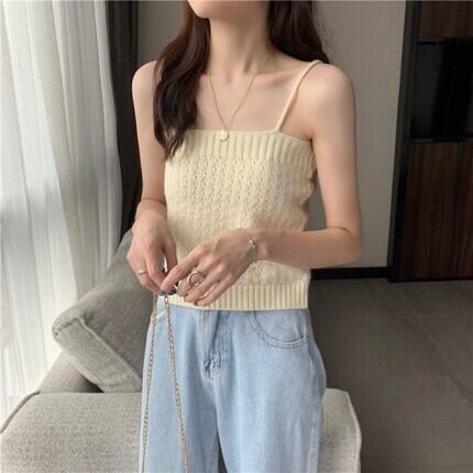 ゆったりして、体型に気にしないながら可愛く着れるニットカーディガンとキャミソールのセット。