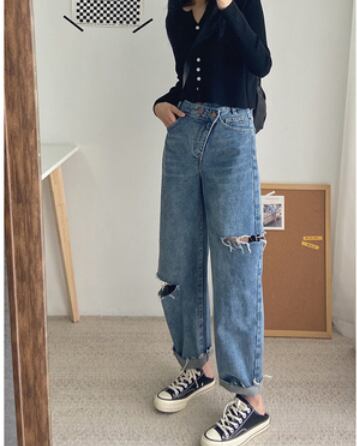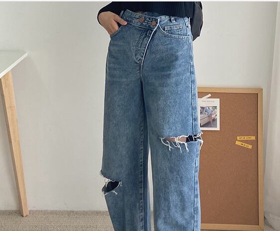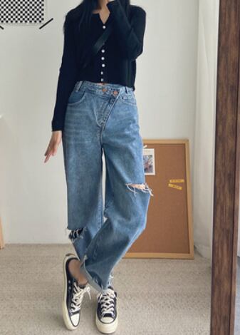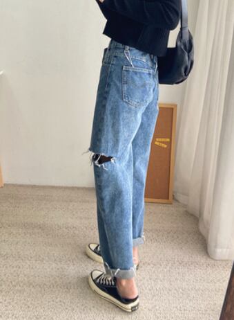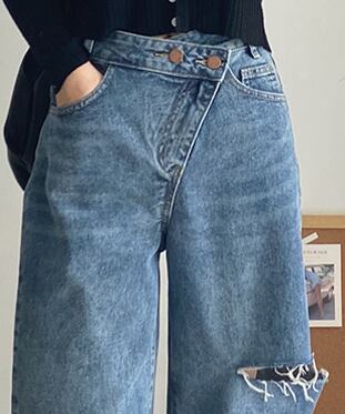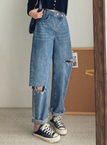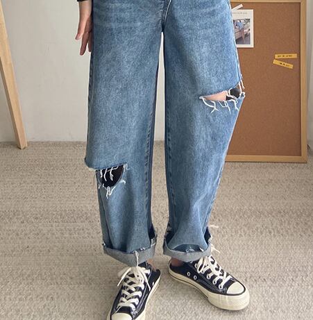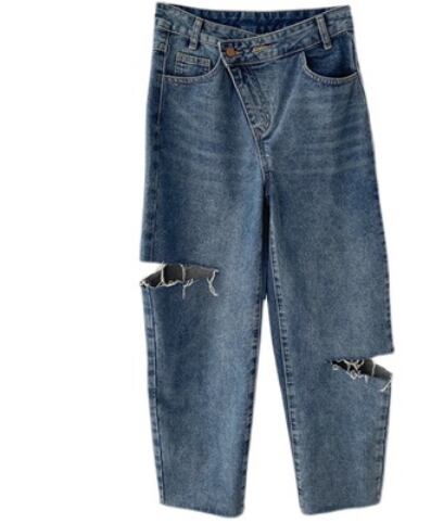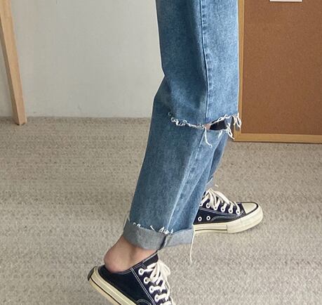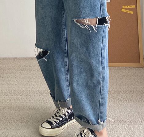 ダメージデニムパンツ ボトム デニムパンツ ロング丈 カジュアル かわいい ラフ シンプル 流行り ブルー おしゃれ かっこいい 大人可愛い 大人女子 こなれ感 キュート 爽やか ナチュラル 柄 春 秋 冬 デニム ダメージ 10代 20代 30代 40代 50代 60代 レディース ママ 女の子 ショッピング 公園 学生 通学 デート お出かけ 女子会 イベント リラックス 着回し 普段使い ファッション コーデ スタイル デート モテ プレゼント 流行 インスタ映え ワイド ゆったり