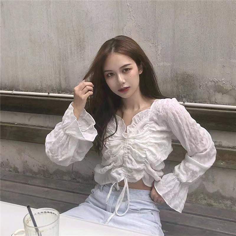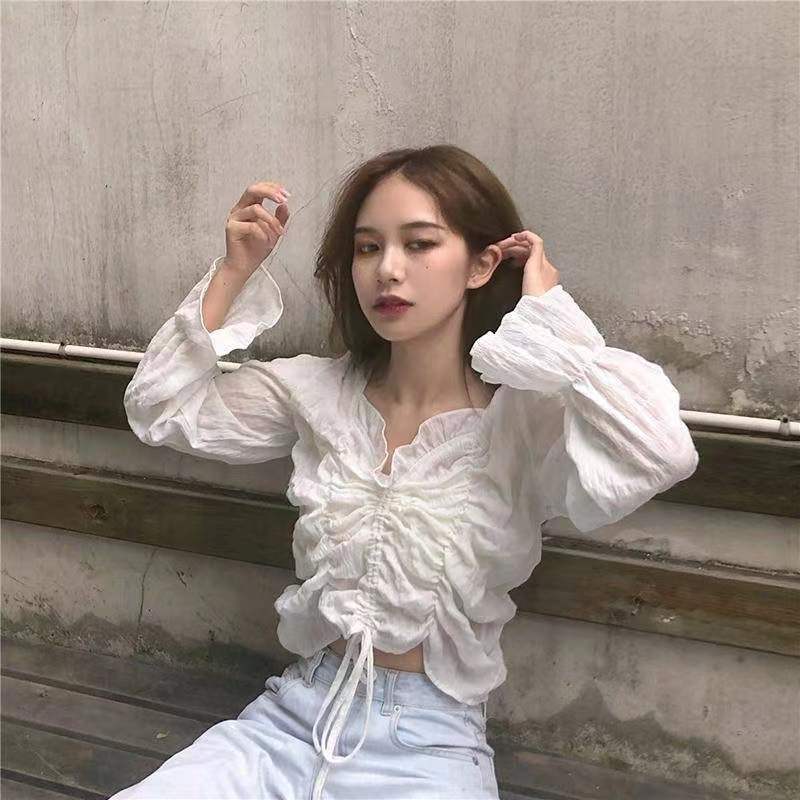 長袖ブラウス トップス ブラウス ショート ショート丈 袖あり 長袖 Vネック フレア Aライン フリル リボン かわいい 大人可愛い きれいめ シンプル カジュアル 大人 上品 おしゃれ お洒落 大人可愛い 大人女子 こなれ感 ラブリー キュート ガーリー モダン 主役級 存在感 無地 春 秋 10代 20代 30代 レディース 学生 通学 デート お出かけ 公園デビュー 女子会 休日 着回し 普段使い 重ね着 韓国系 オルチャン サイズ S M L XL 色展開 白 ホワイト