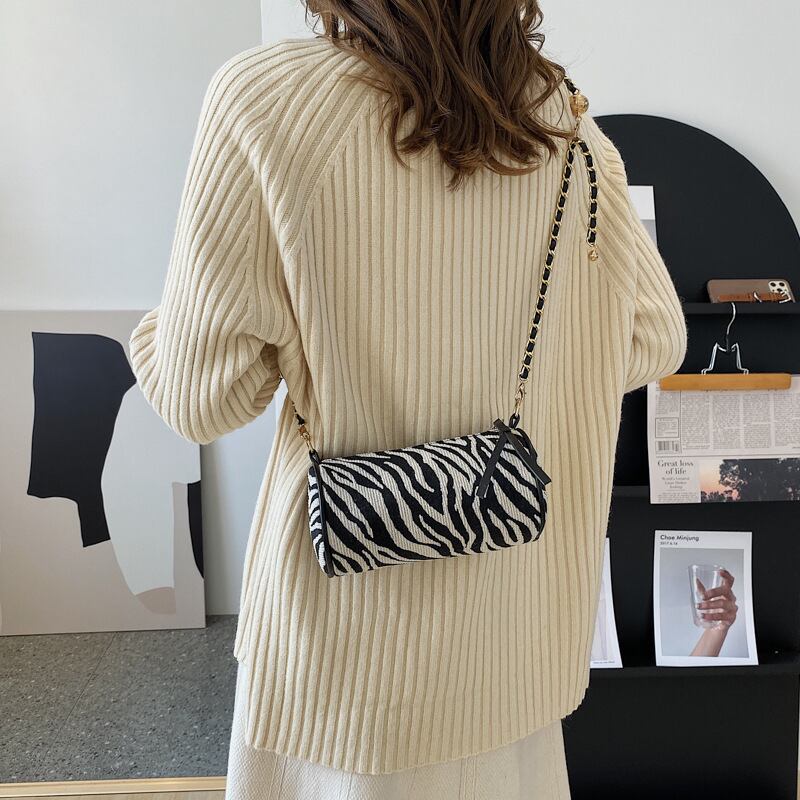 キルティング、ゼブラ柄が目を惹くコンパクトなバッグ。