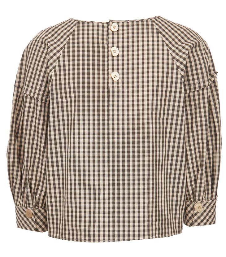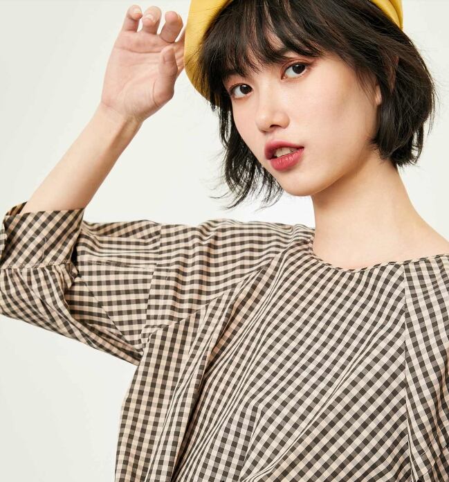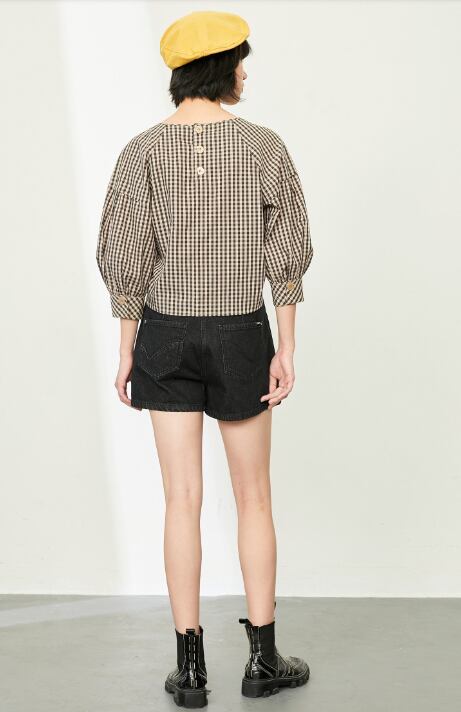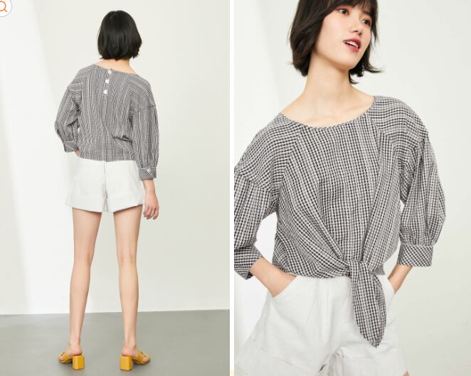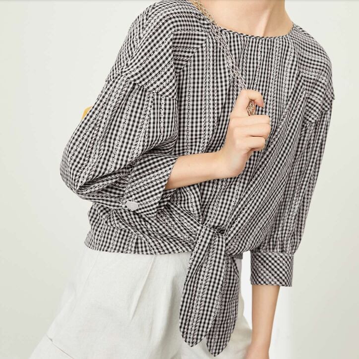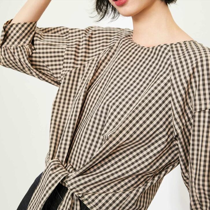 涼しげなギンガムチェックのガーリーなブラウス。