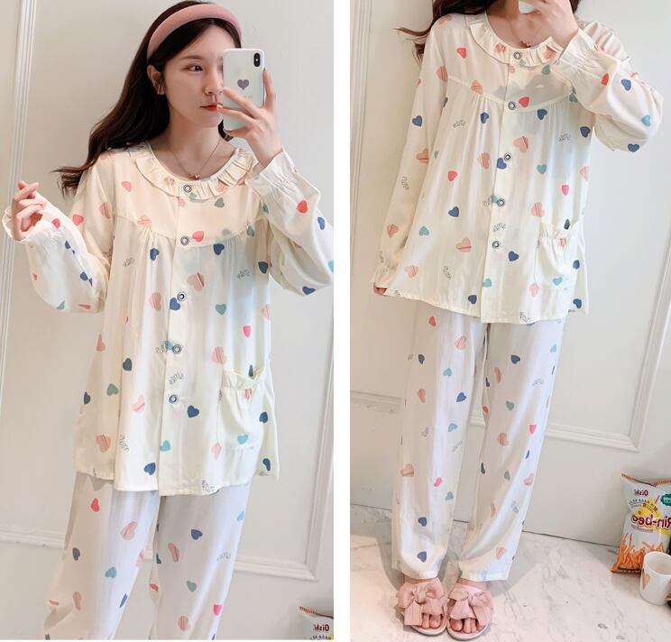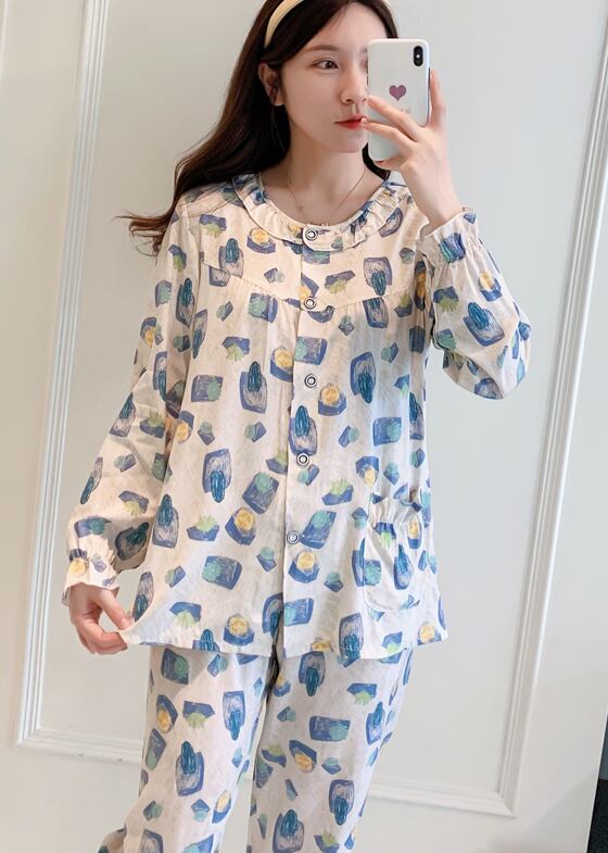 パジャマ ルームウェア パジャマ 部屋着 寝巻き ナイトウェア ロング ロング丈 袖あり 長袖 ラウンドネック フリル 前開き ウエストゴム 綿 上下セット 2点セット ツーピース かわいい 大人可愛い きれいめ シンプル カジュアル 大人 上品 おしゃれ お洒落 大人可愛い 大人女子 こなれ感 ラブリー キュート ガーリー モダン 主役級 存在感 柄 春 秋 10代 20代 30代 レディース 女子会 お泊まり 休日 着回し 普段使い 重ね着 韓国系 オルチャン サイズ L XL 2XL 3XL
