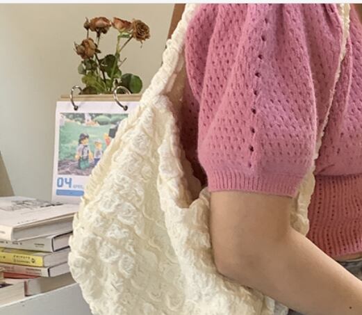 ホワイトカラーのシンプルなハンドバッグです。