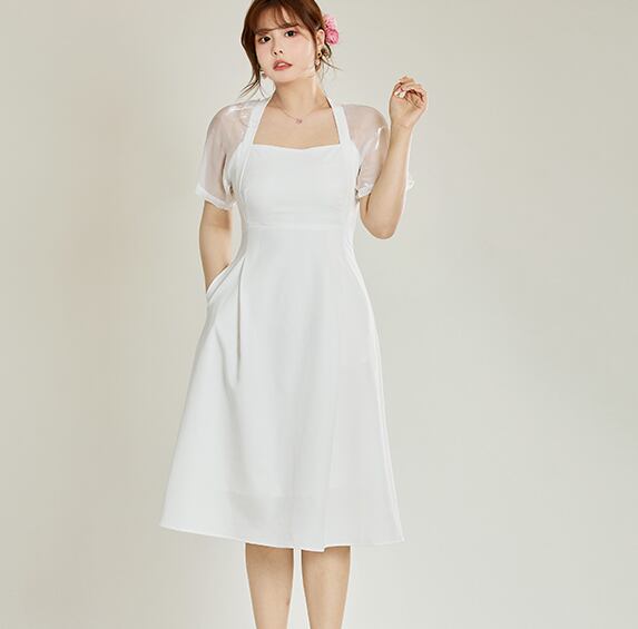 華やかな半袖&膝丈ワンピースです。