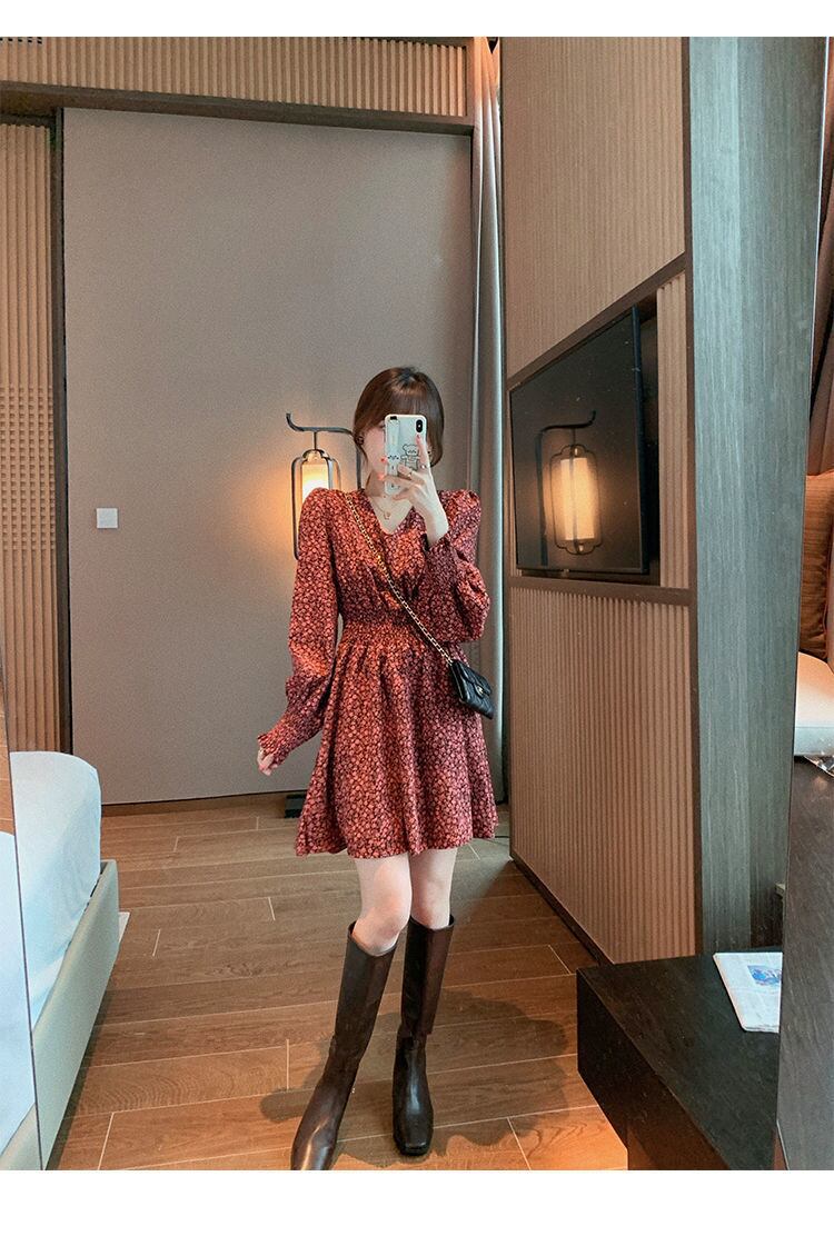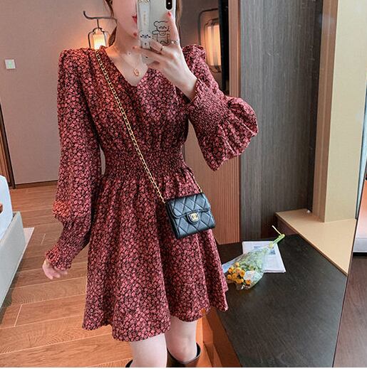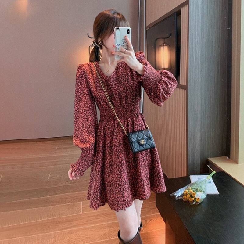 花柄ワンピース ワンピース フレアワンピース ミニ丈 袖あり 長袖 Vネック フレア Aライン シフォン ウエストマーク ハイウエスト かわいい 大人可愛い きれいめ シンプル カジュアル 大人 上品 おしゃれ お洒落 大人可愛い 大人女子 こなれ感 ラブリー キュート ガーリー モダン 主役級 存在感 柄 花柄 春 秋 10代 20代 30代 レディース OL 通勤 学生 通学 デート お出かけ 公園デビュー 女子会 休日 着回し 普段使い 重ね着 韓国系 オルチャン サイズ M L XL 2XL