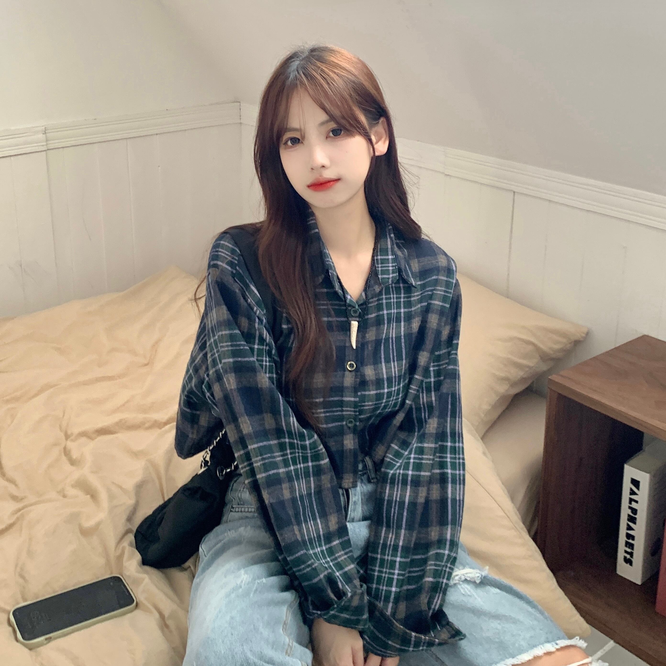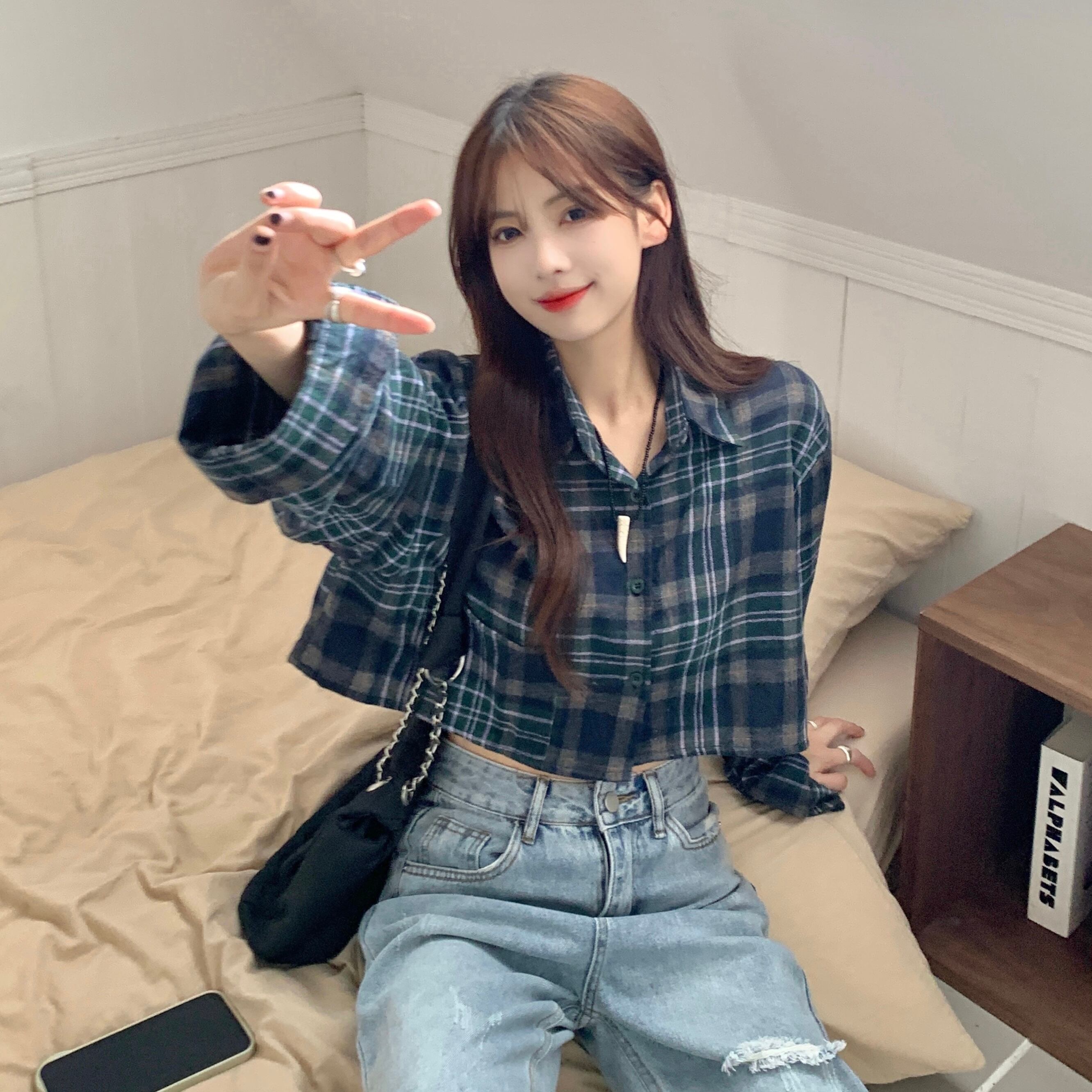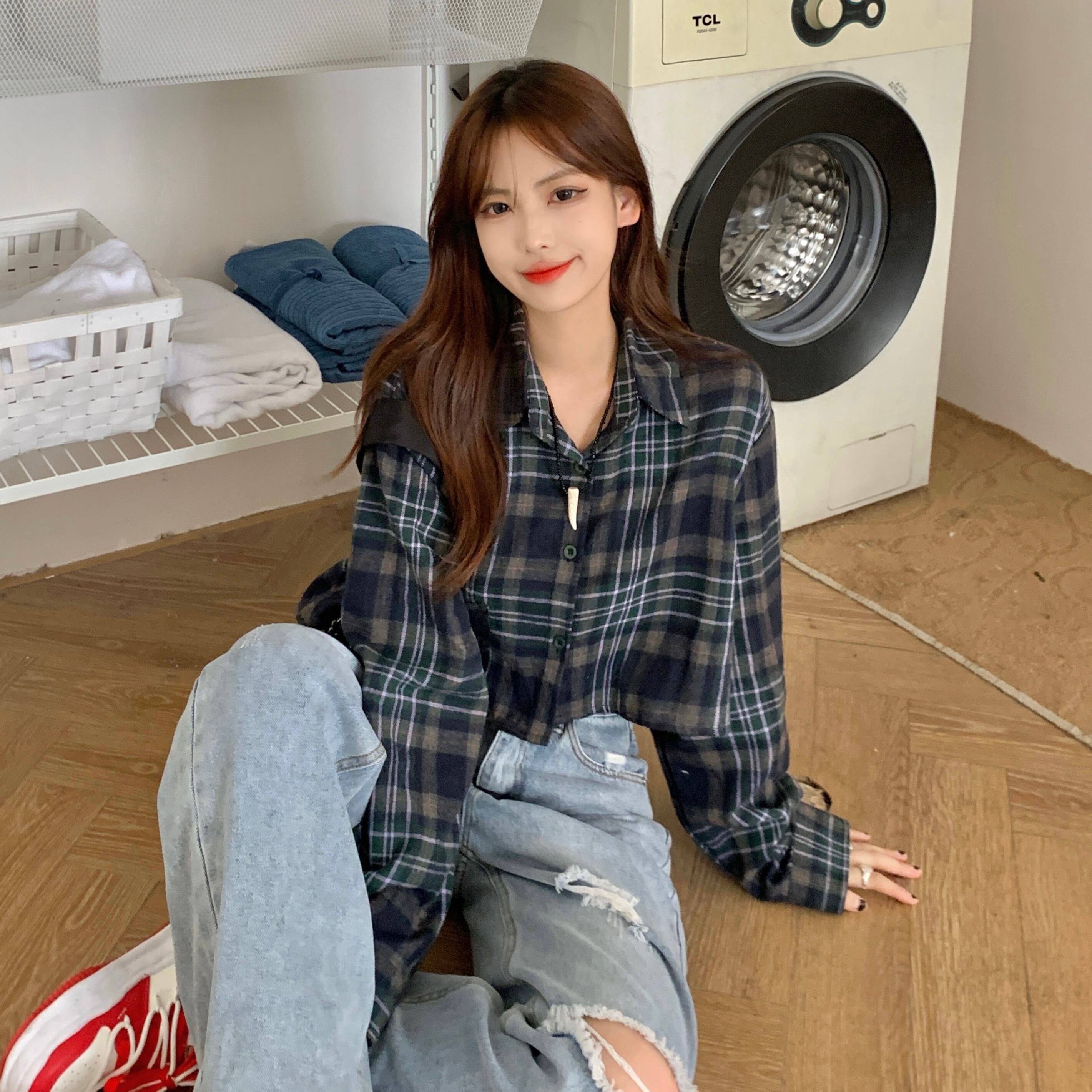 チェック柄シャツ トップス シャツ ブラウス ショート ショート丈 袖あり 長袖 Vネック 襟付き 前開き かわいい 大人可愛い きれいめ シンプル カジュアル 大人 上品 おしゃれ お洒落 大人可愛い 大人女子 こなれ感 ラブリー キュート ガーリー モダン 主役級 存在感 柄 チェック柄 春 秋 10代 20代 30代 レディース 学生 通学 デート お出かけ 公園デビュー 女子会 休日 着回し 普段使い 重ね着 韓国系 オルチャン サイズ L XL 2XL 色展開 ネイビー