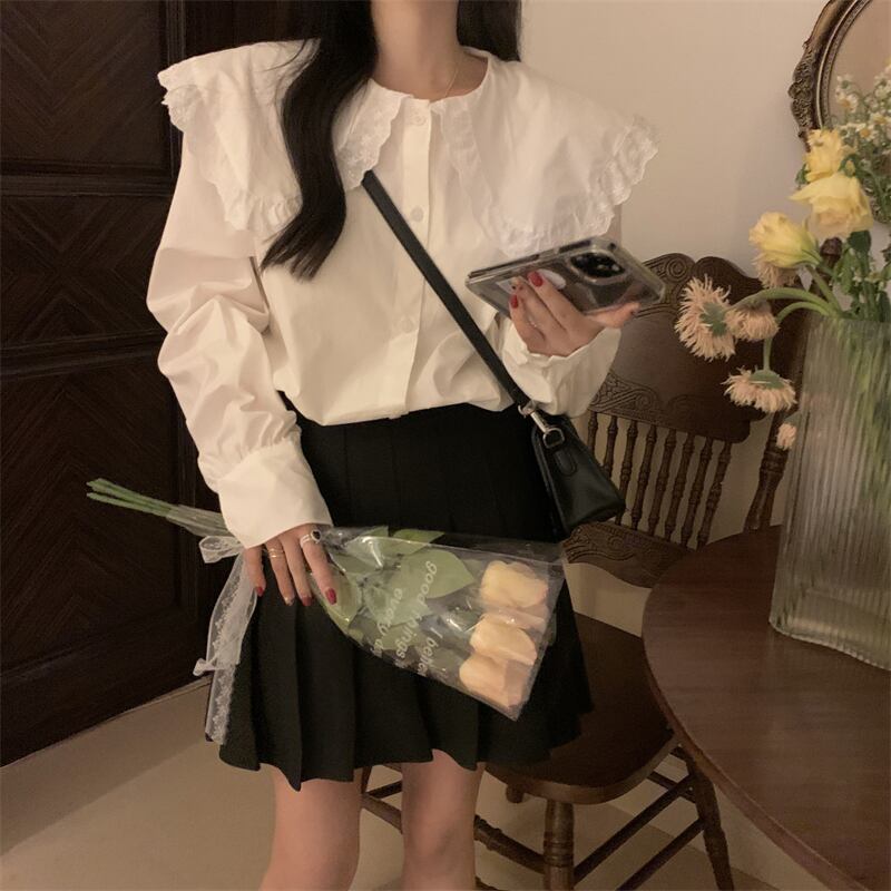 レース襟ブラウス トップス シャツ ブラウス 袖あり 長袖 ラウンドネック 襟付き レース フリル 前開き かわいい 大人可愛い きれいめ シンプル カジュアル 大人 上品 おしゃれ お洒落 大人可愛い 大人女子 こなれ感 キュート ガーリー モダン 主役級 存在感 無地 春 秋 10代 20代 30代 レディース オフィス ビジネス OL 通勤 学生 通学 デート お出かけ 女子会 休日 着回し 普段使い 重ね着 韓国系 オルチャン サイズ S M L XL 2XL 色展開 白