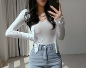 リブで細身に仕上げておりほんのり広がる長袖も上品。