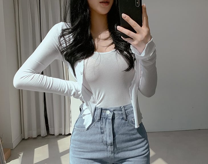 トップス カーディガン キャミソール ショート ショート丈 袖あり 長袖 Vネック スリム タイト 細身 前開き 2点セット ツーピース かわいい 大人可愛い きれいめ シンプル カジュアル 大人 上品 おしゃれ お洒落 大人可愛い 大人女子 こなれ感 キュート ガーリー モダン 主役級 存在感 無地 春 夏 秋 10代 20代 30代 レディース 学生 通学 デート お出かけ 女子会 休日 着回し 普段使い 重ね着 韓国系 オルチャン 色展開 白 ホワイト 黒 ブラック 紫 パープル