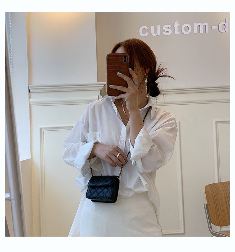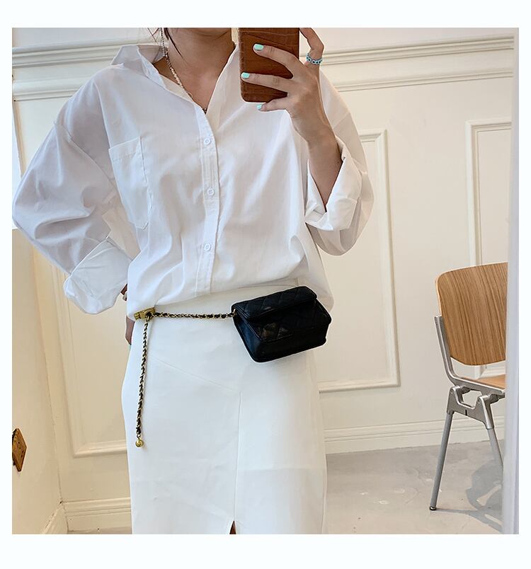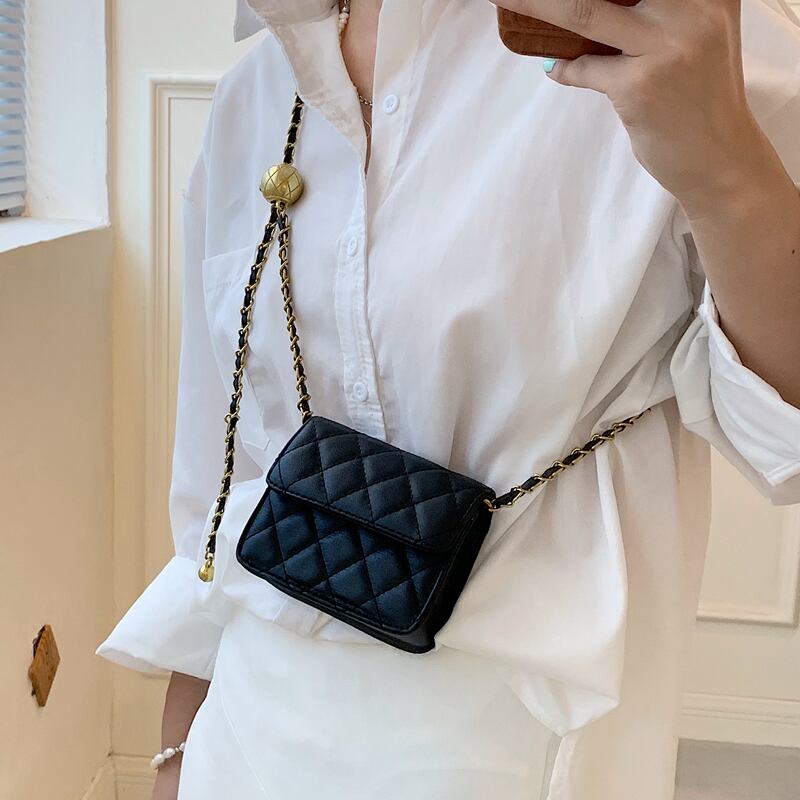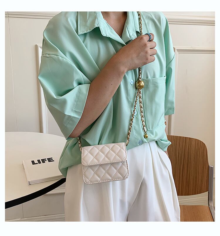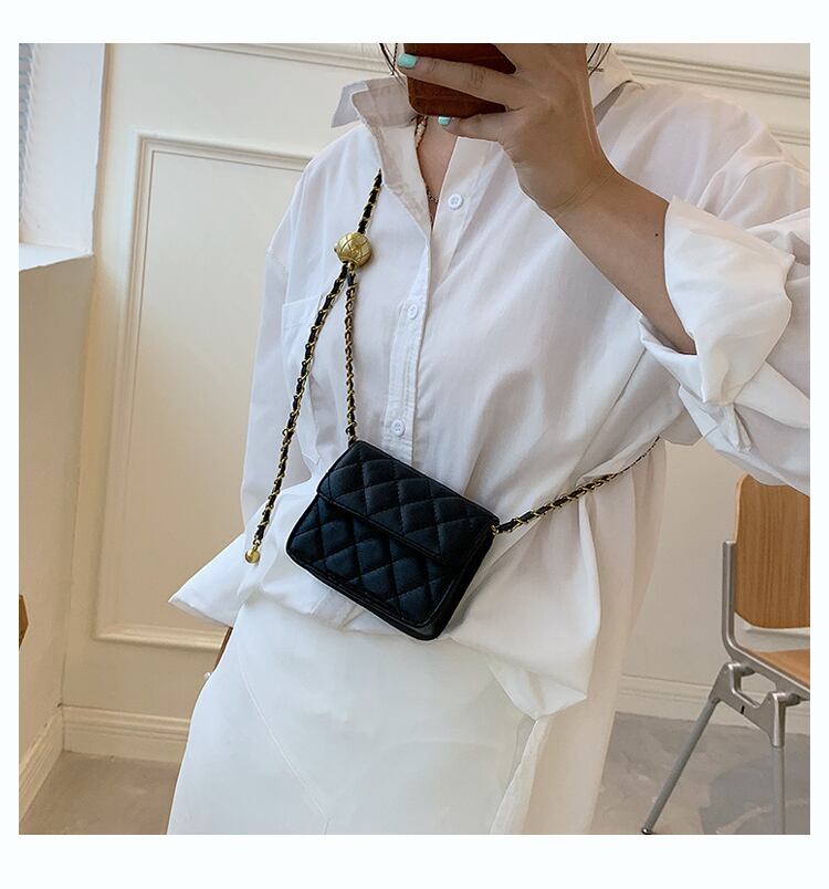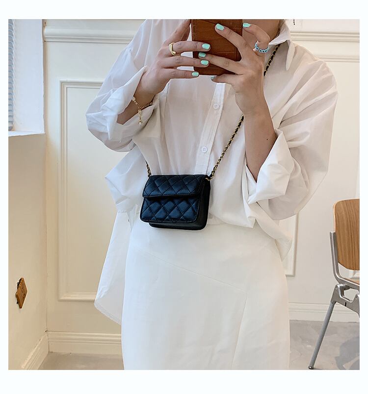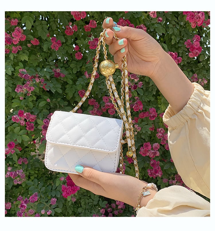 ミニサイズにゴールドのチェーンがトレンド感満載のデザインのショルダーバッグ。