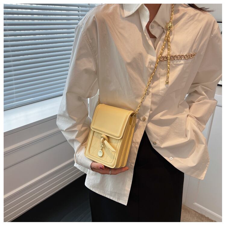 金属チェーンのデザインがレトロなおしゃれ感を引き立たせます。