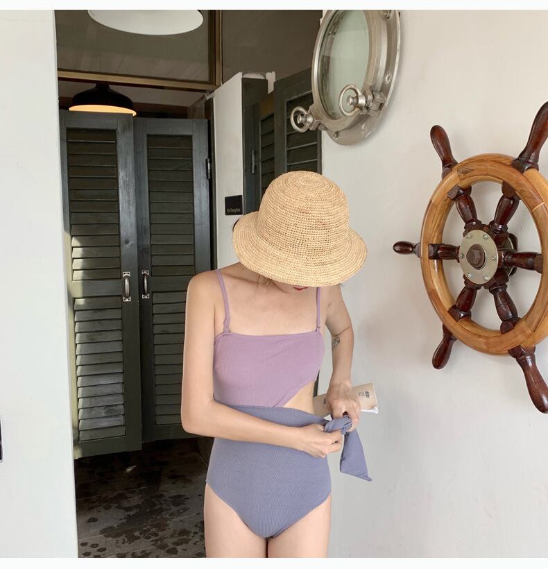 ウエストだけカットされたお洒落なデザインが目を惹くワンピース水着。