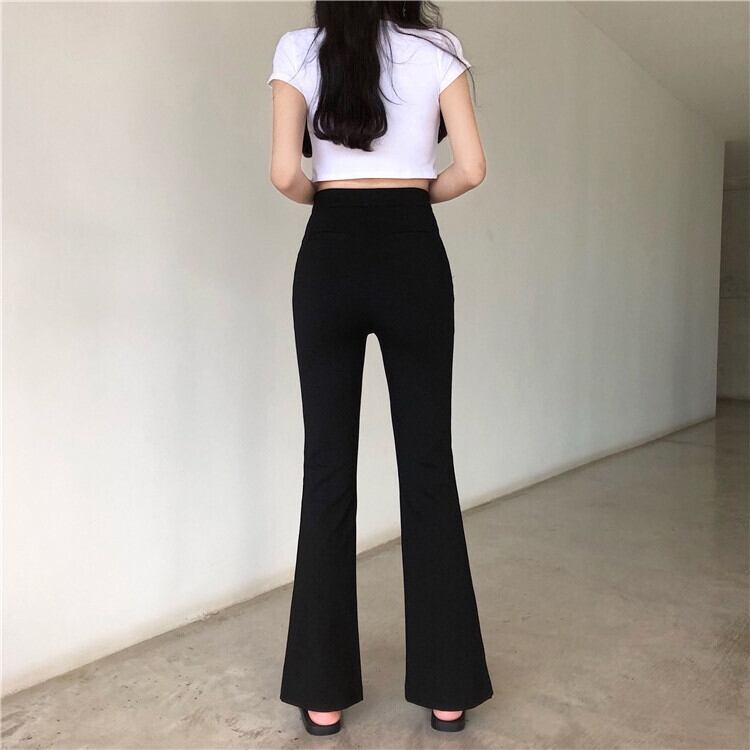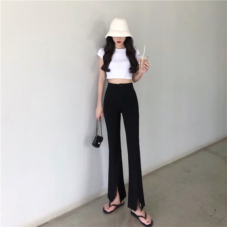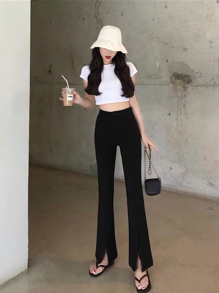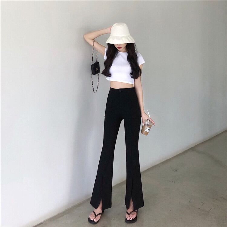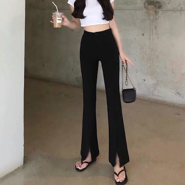 春秋オープンフォークマイクロホーンパンツ女性ハイウエストスキニー黒カジュアル広い脚ズボン パンツ スキニーパンツ 細身 スリット ハイウエスト 大人可愛い きれいめ シンプル カジュアル 大人 おしゃれ 大人女子 ラフ キュート クール モード系 セクシー 無地 春 10代 20代 30代 レディース OL 通勤 学生 通学 デート お出かけ 女子会 お泊まり 休日 旅行 着回し 普段使い 美脚 脚長 S M L XL 2XL ブラック