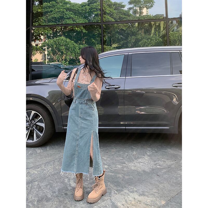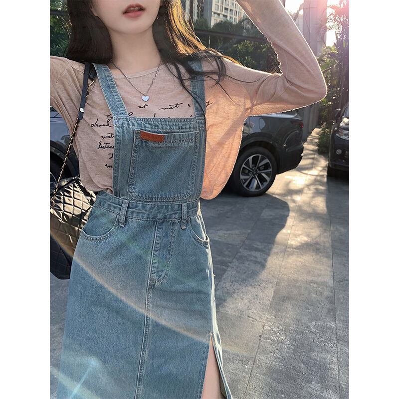 オールシーズン使っていただけるデニムロングジャンバースカート。