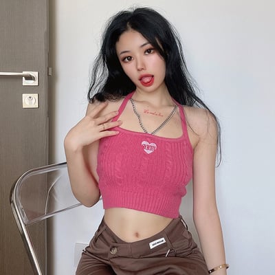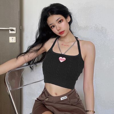 チェーンとハート刺繍がアクセントのニットキャミソール。