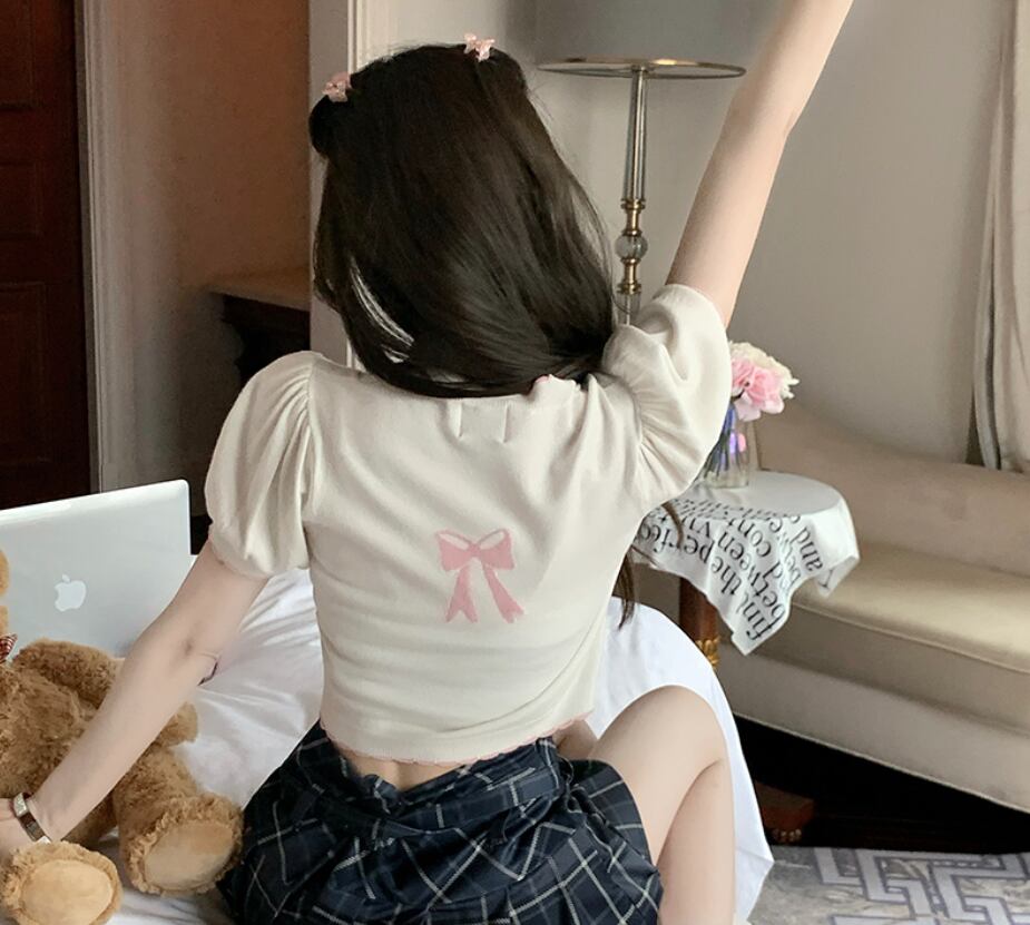 パフスリーブとバックのリボンプリントがとってもガーリー。
