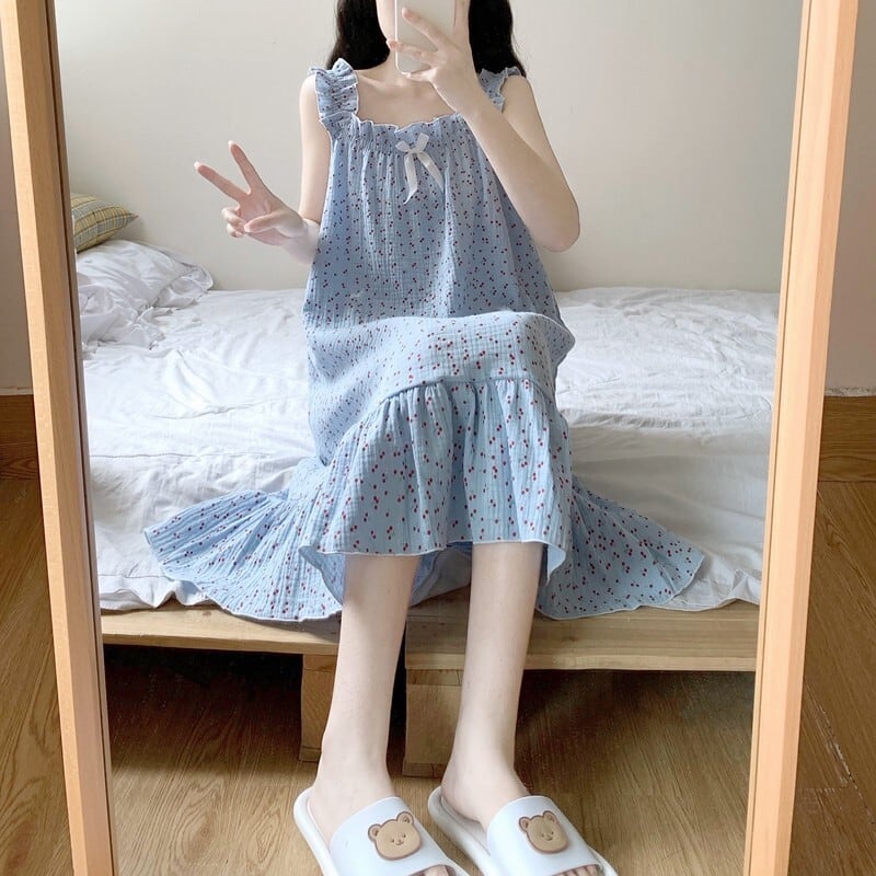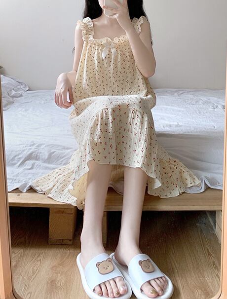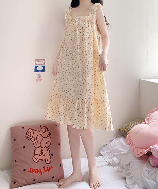 チェリー柄がとびきりキュートな雰囲気に仕上げてくれるルームウェアワンピース。
