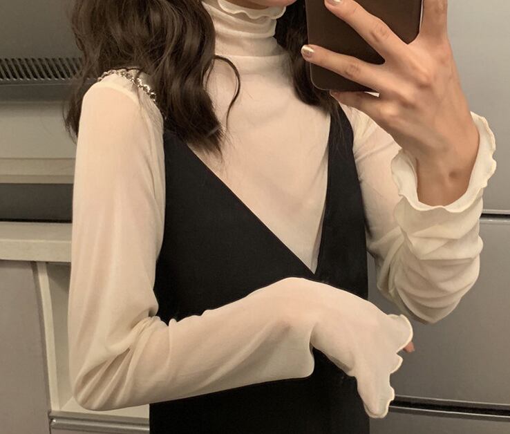 ハイネックシアートップス トップス カットソー フレアスカート 袖あり 長袖 ハイネック 透け感 シースルー かわいい 大人可愛い きれいめ シンプル カジュアル 大人 上品 おしゃれ お洒落 大人可愛い 大人女子 こなれ感 キュート ガーリー モダン 主役級 存在感 無地 春 夏 秋 10代 20代 30代 レディース 学生 通学 デート お出かけ 公園デビュー 女子会 休日 着回し 普段使い 重ね着 韓国系 オルチャン サイズ S M L 色展開 白 ホワイト 黒 ブラック アプリコット