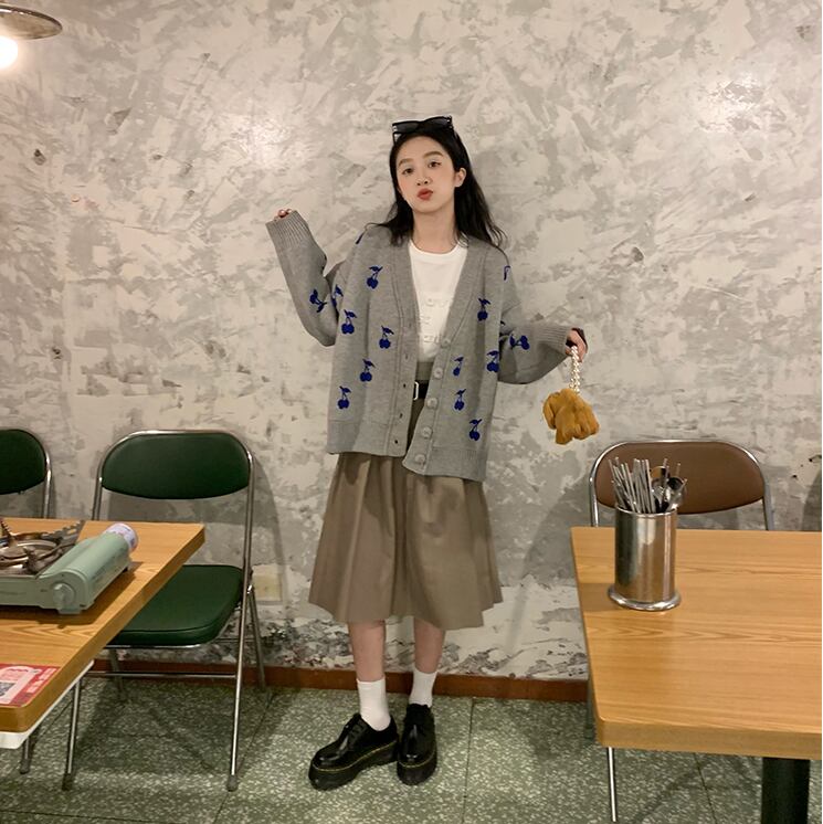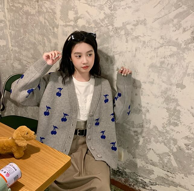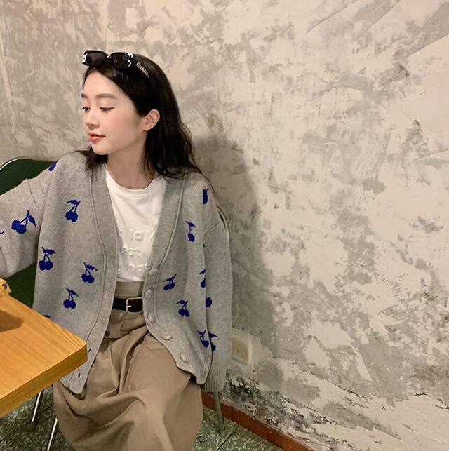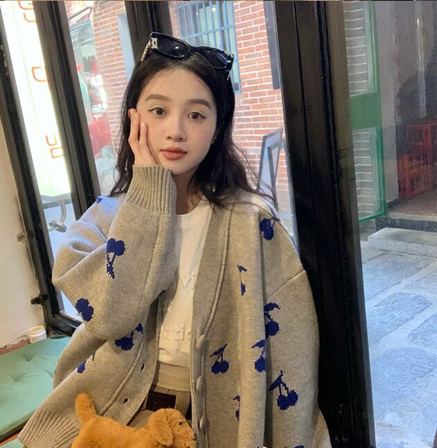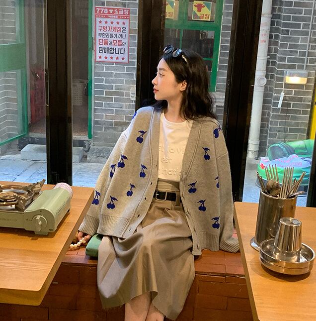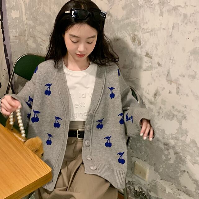 大きめのチェリー柄が可愛いカーディガン。
