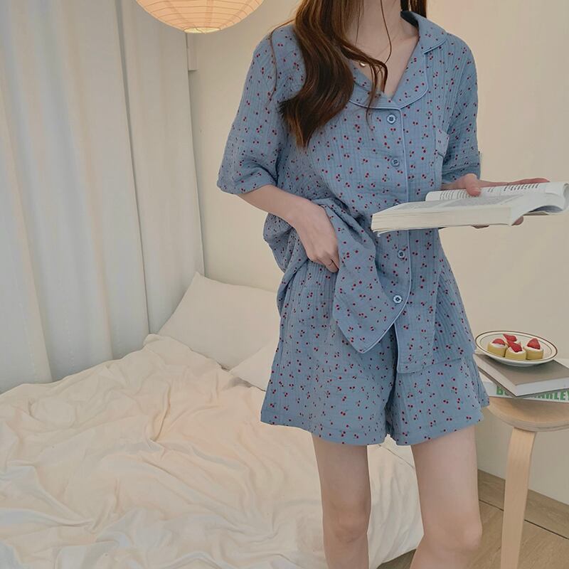 パジャマ セットアップ ルームウェア パジャマ 部屋着 寝巻き ナイトウェア ショート ショート丈 袖あり 半袖 Vネック 襟付き 前開き ウエストゴム 上下セット 2点セット ツーピース かわいい 大人可愛い きれいめ シンプル カジュアル 大人 上品 おしゃれ お洒落 大人可愛い 大人女子 こなれ感 キュート ガーリー モダン 主役級 存在感 柄 春 夏 10代 20代 30代 レディース 女子会 お泊まり 休日 着回し 普段使い 重ね着 韓国系 オルチャン 色展開 青 ブルー