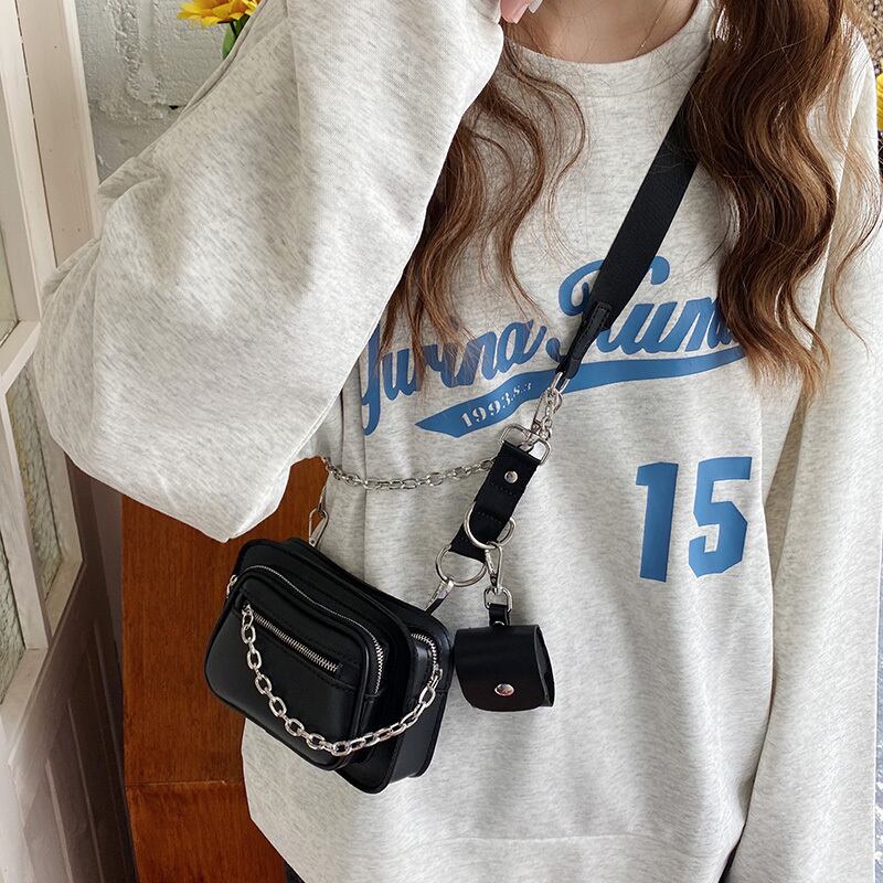 ブラックのPUレザー×チェーンでクールに決まるショルダーバッグ。