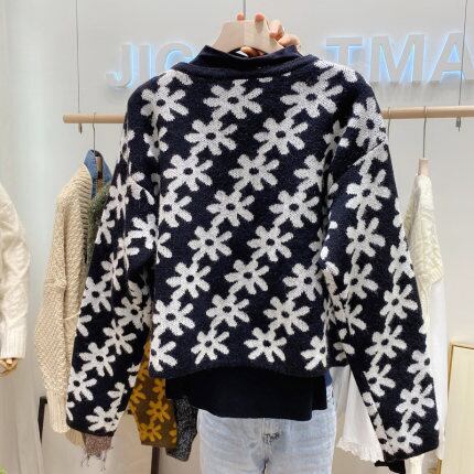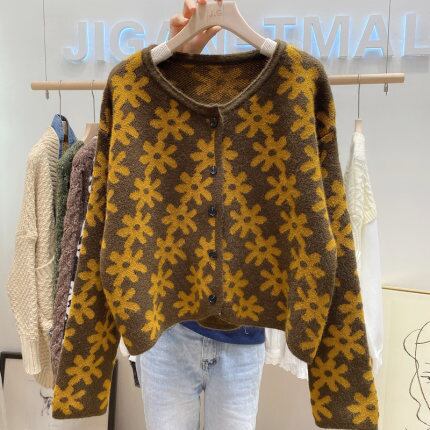 花柄がレトロな雰囲気のあるカーディガン。