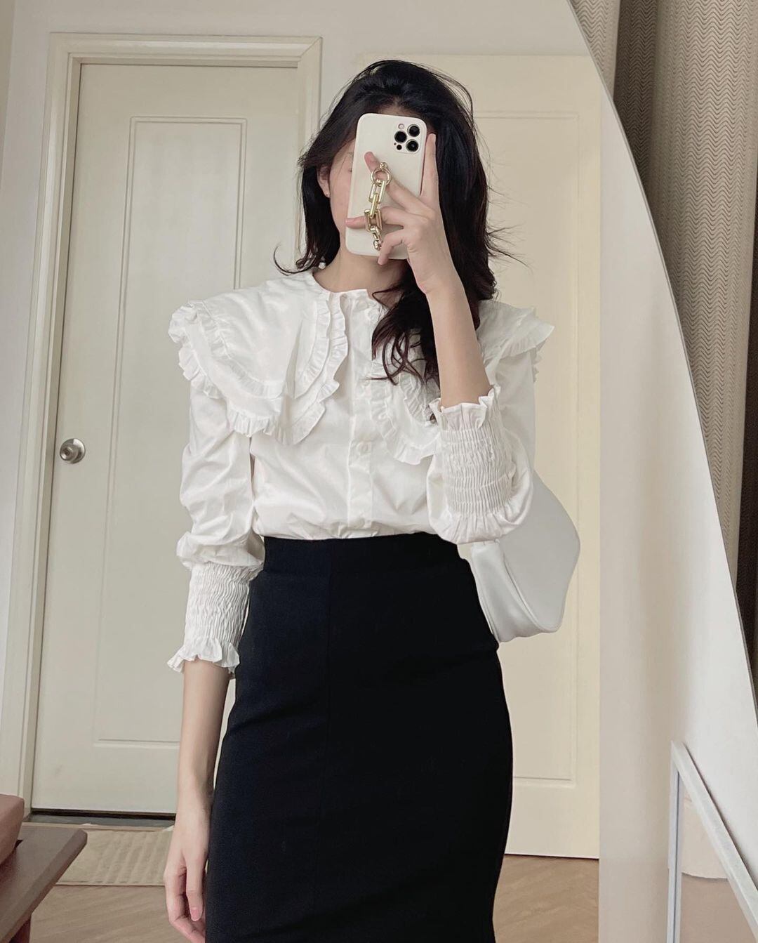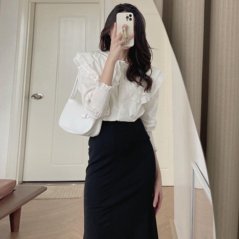 長袖ブラウス トップス シャツ ブラウス 袖あり 長袖 襟付き フリル 前開き かわいい 大人可愛い きれいめ シンプル カジュアル 大人 上品 おしゃれ お洒落 大人可愛い 大人女子 こなれ感 キュート ガーリー モダン 主役級 存在感 無地 春 秋 10代 20代 30代 レディース OL 通勤 学生 通学 デート お出かけ 公園デビュー 女子会 休日 着回し 普段使い 重ね着 韓国系 オルチャン サイズ S M L 色展開 白 ホワイト