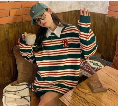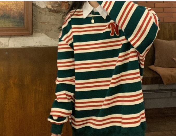 カジュアルボーダーニット トップス 袖あり 長袖 ロング丈 ニット かわいい 大きめサイズ おしゃれ かっこいい オーバーサイズ こなれ感 カジュアル ラフ ナチュラル 柄 春 秋 冬 公園 10代 20代 30代 40代 50代 ママ 女の子 男の子 男女兼用 ボーイッシュ 通勤 学生 通学 デート お出かけ 女子会 ゆったり 着回し 普段使い ファッション コーデ スタイル デート ボーダー 流行 インスタ映え フリーサイズ ゆったり